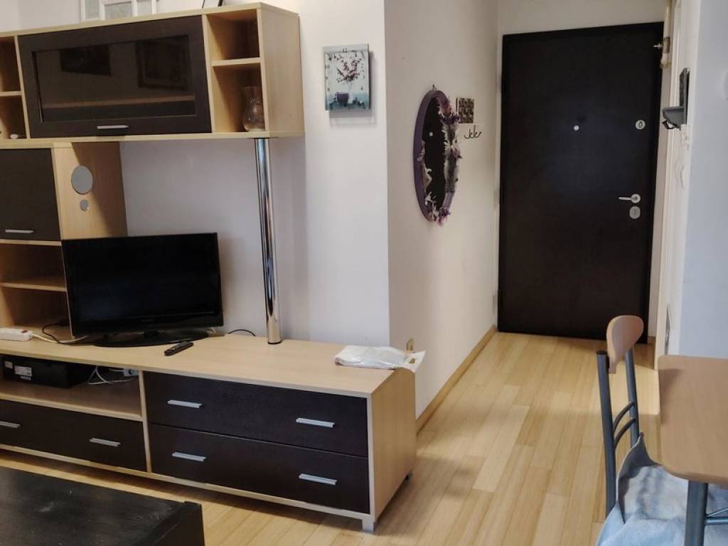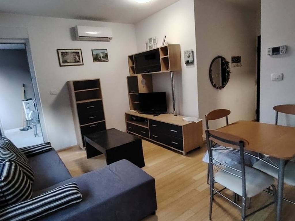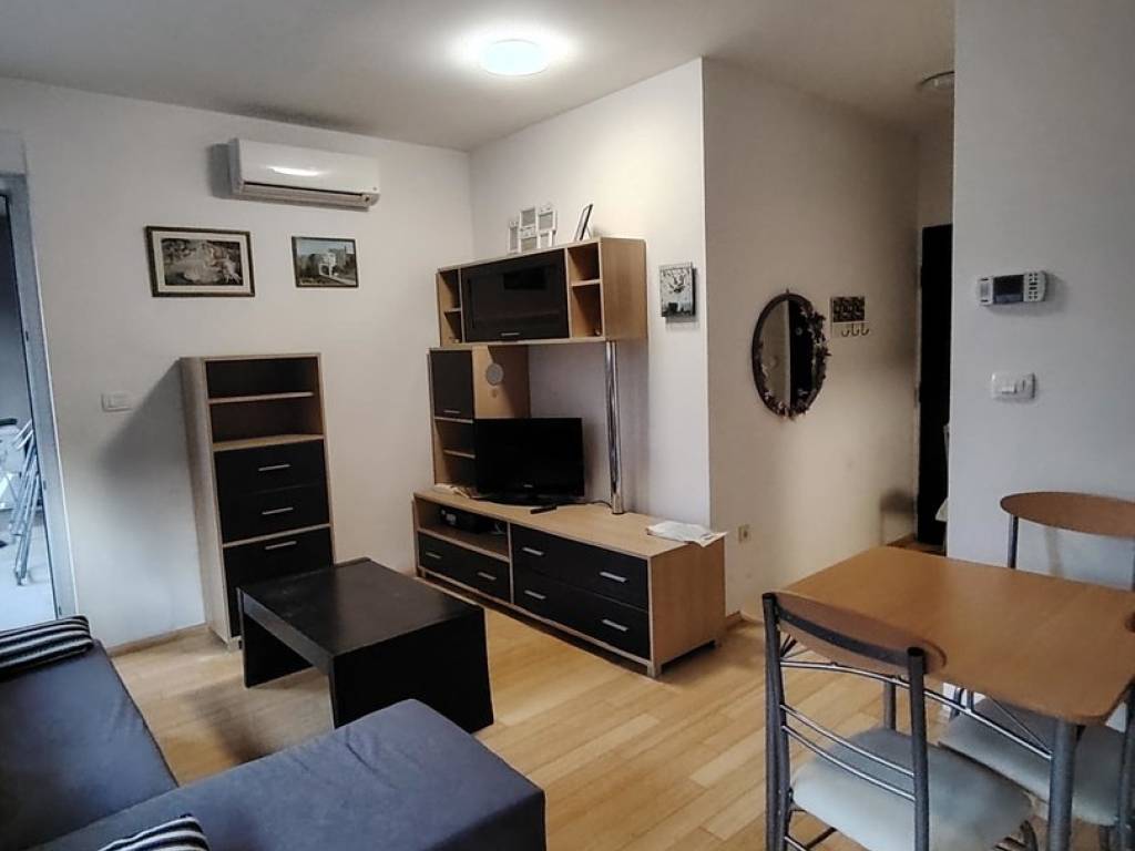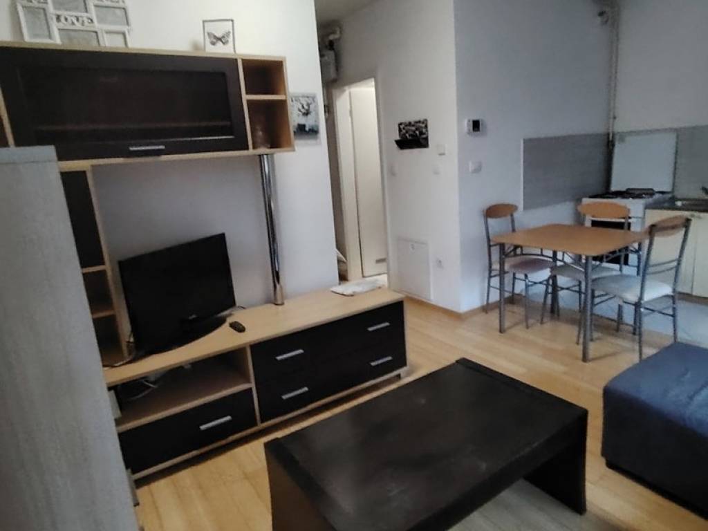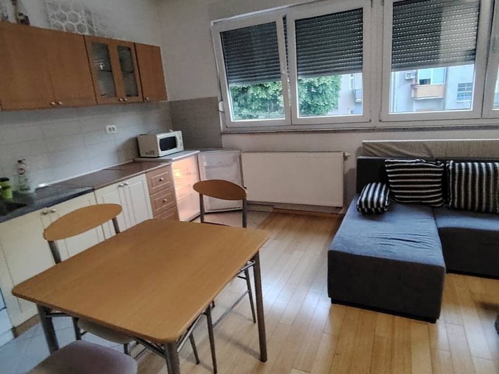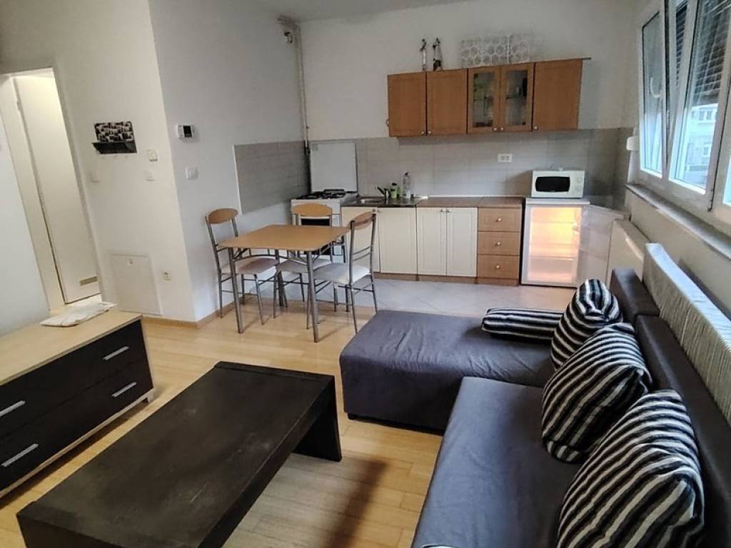Iznajmljuje se na duži period (min. 1 godina) lijepo uređena garsonjera od 24 m2 s lijepo ukomponiranom lođom od 5 m2. Garsonjera je potpuno namještena, a sastoji se od: - ulaznog hodnika (protuprovalna vrata + video portafon) - kupaone s tuš kabinom i perilicom rublja i - open space prostora kuhinje, blagovaone i dnevnog boravka, unutar kojeg je kutna garnitura i ugrađena klima - lijepe lođe