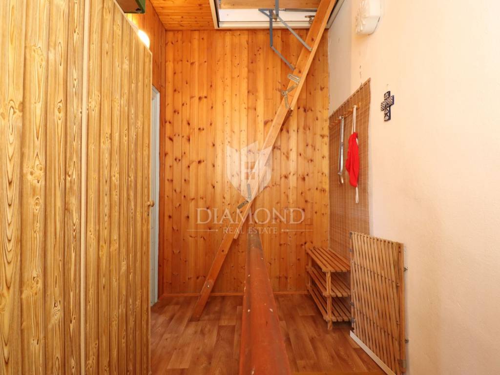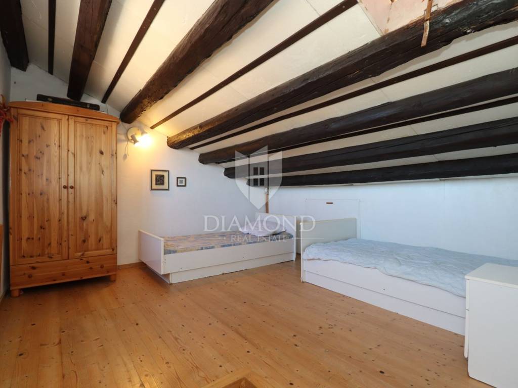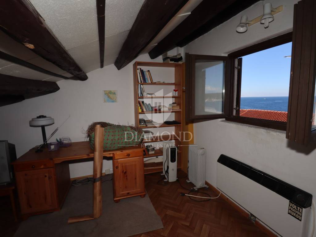 Through a hallway owned by the apartment, you reach an additional space – a 20 m² attic, arranged into two smaller bedrooms with an open view of the sea and the old town. The roof and wooden beams are in good condition and have been recently renovated, providing extra security and peace of mind for the future owner.