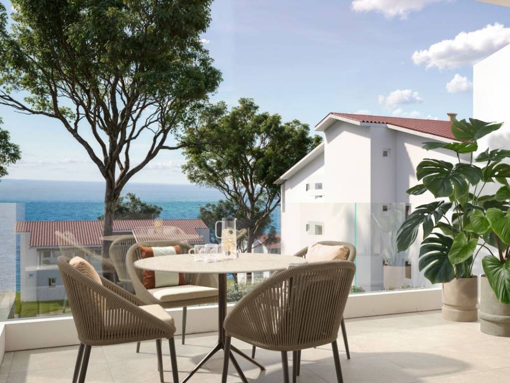 Located on the first floor within a contemporary resort in the second row to the sea, this two-bedroom residence offers 63 m of net internal space and a 7 m terrace.