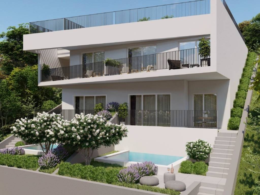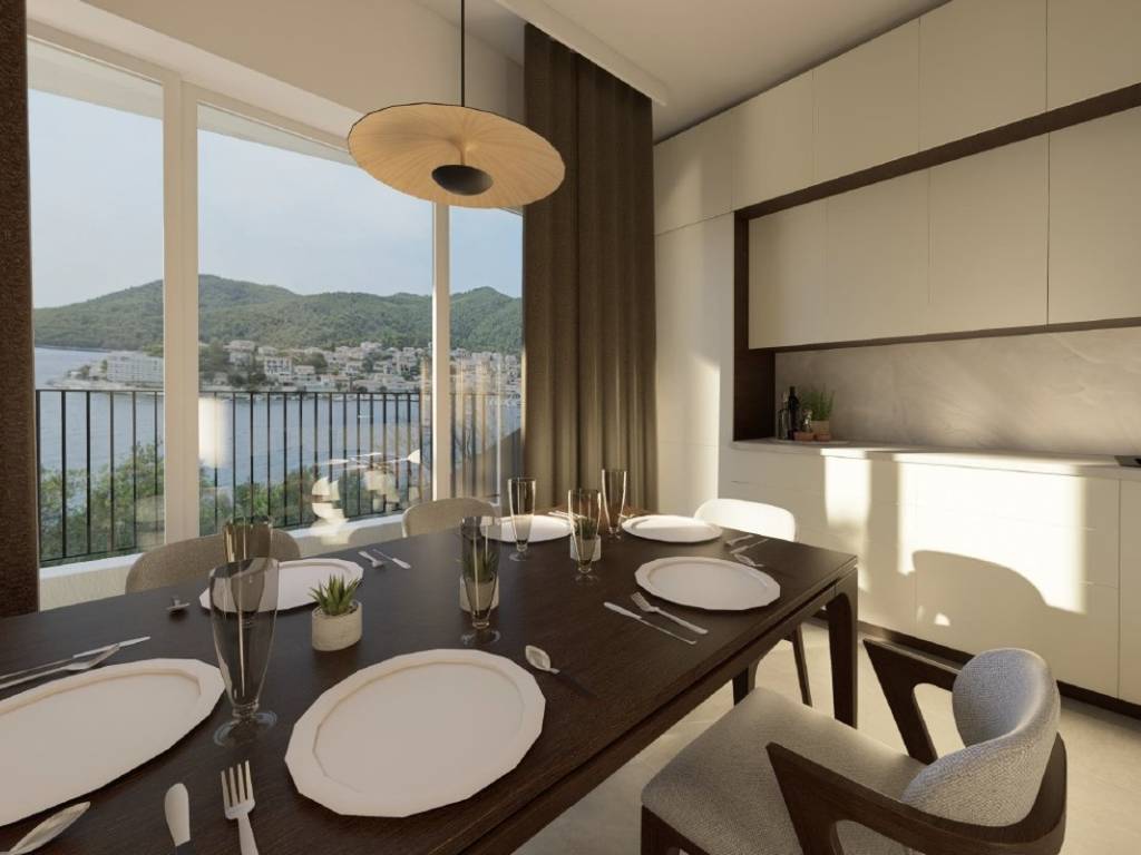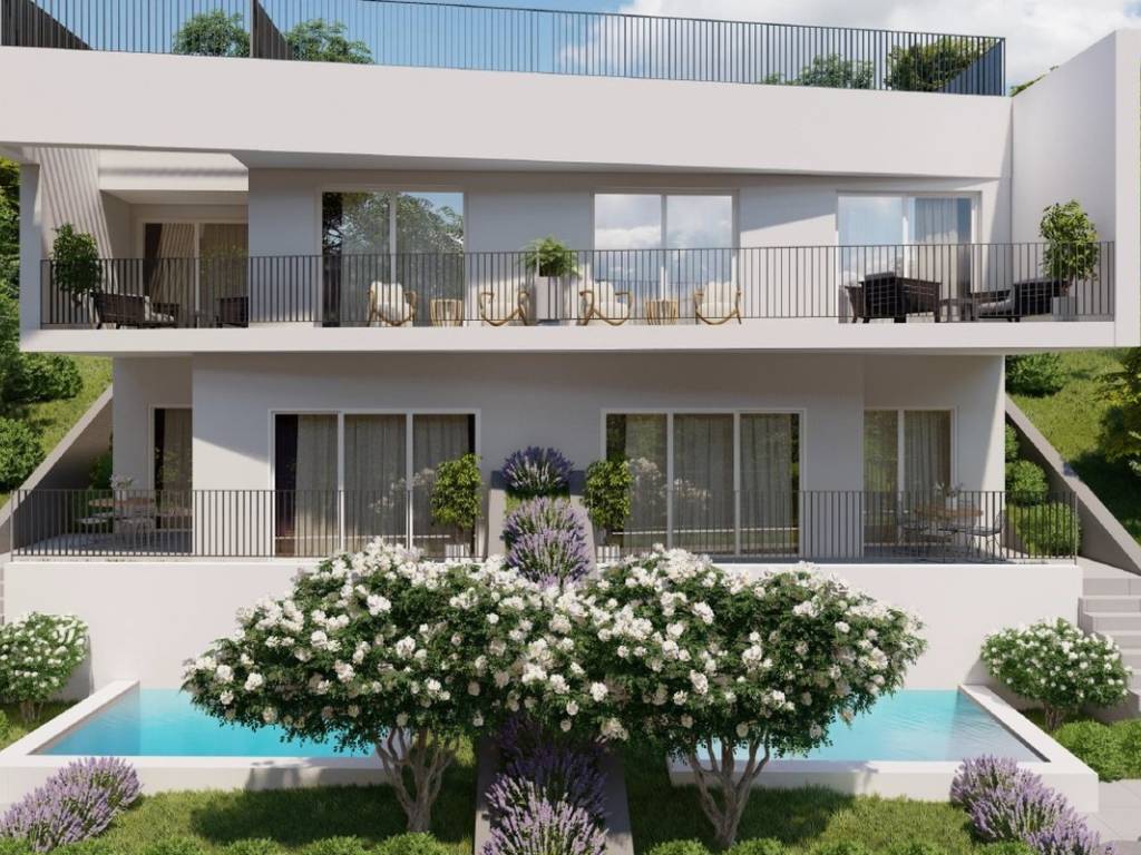 The western orientation and the configuration of the terrain provide the apartment with plenty of natural light and an unobstructed, open view of the sea.