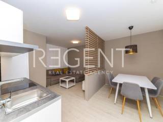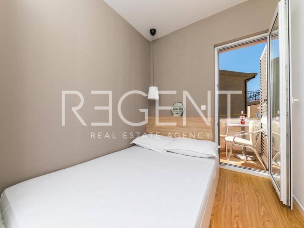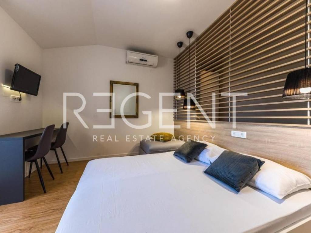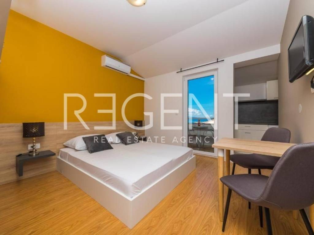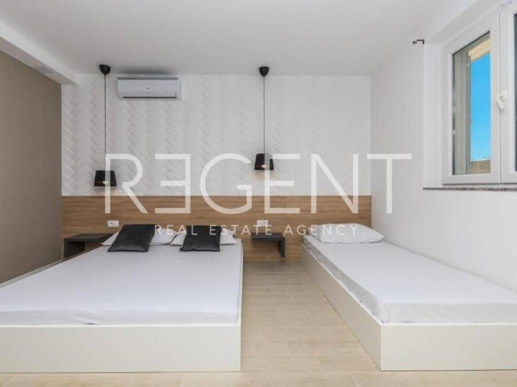 An apartment house with a total of 18 accommodation units is for sale, located in Baška Voda, one of the most desirable tourist destinations on the Makarska Riviera. The net area of the property is 630 m² and extends over the ground floor and two floors and represents an exceptional opportunity for investors in tourist rental or buyers who want to take over an already organized and functional accommodation facility in the immediate vicinity of the sea. This is an apartment house that is being sold as a whole, and consists of studio, one-bedroom and two-bedroom apartments. The sizes range from approximately 28 to 30 m² for studio apartments, from 35 to 40 m² for one-bedroom apartments and from 40 to 45 m² for two-bedroom apartments. All apartments have a balcony or terrace, while most of the units on the upper floors offer a partial or open view of the sea, or a view of the mountain. Each accommodation unit is equipped with a kitchen, bathroom and air conditioning, and the layouts are functional and adapted to tourist rentals, which allows a pleasant stay for guests and easy maintenance. On the ground floor there are two one-bedroom apartments, one studio apartment and one two-bedroom apartment, each with its own outdoor space, kitchen and bathroom. The first floor includes eight studio apartments, some of which have a shared terrace, while others have their own balconies with partial or open views of the sea. The second floor consists of six apartments – three studio apartments, two one-bedroom and one two-bedroom apartment. This floor is especially distinguished by the variety of accommodation units and balconies with views of the sea or mountain, as well as a large shared terrace with an open view of the sea, equipped with a barbecue and tables, which represents additional value in the tourist offer and a space for socializing guests. In addition to the accommodation units, the property also has additional facilities that significantly increase its functionality and value. Within the house there is a reception area, a separate one-bedroom apartment for the owner or staff with two bathrooms, a kitchen and a living room, as well as a laundry room equipped with industrial appliances. A solar water heater is also installed on the property, and the electrical installations were renovated a few years ago, and the air conditioners are of a newer generation, which contributes to energy efficiency and a reduction in operating costs. The property is technically maintained and adapted to continuous tourist business. The house is located in a very sought-after micro-location in Baška Voda, in a quieter and slightly elevated part of the place that allows open views of the sea and the mountain, while the beach, promenade, restaurants, cafes and shops are only a few minutes' walk away. This position provides an ideal balance between privacy and proximity to all amenities important to tourists, which ensures a high level of interest and occupancy during the season in the long term. The proximity of the natural beauty of Biokovo, the landscaped coast and good transport connections further emphasize the investment potential of this property. This apartment house represents a rare opportunity to purchase an already organized tourist facility in one of the most sought-after locations on the Adriatic. For more information and to arrange a viewing, feel free to contact us.