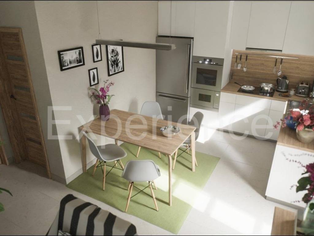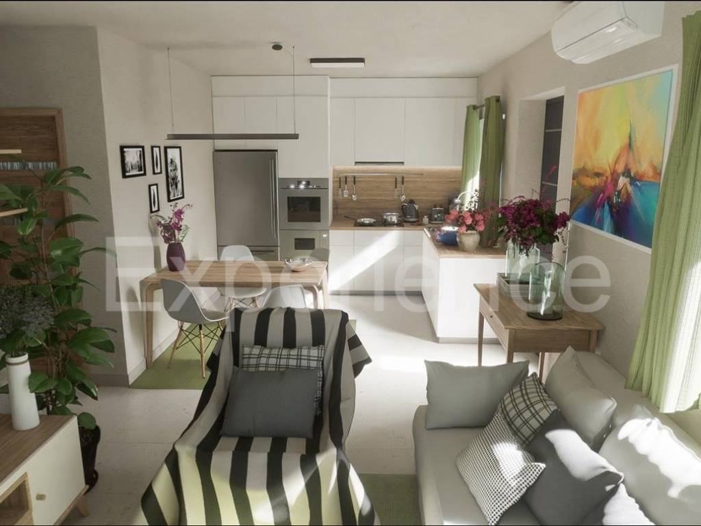 On sale is an apartment with a surface of 65,35 m. The apartment is located on the ground floor of an intimate residential building with only four residential units, with an autonomous entrance from a private garden. Contains: an open and bright space that combines the living room, kitchen and dining room with access to a covered terrace, two bedrooms, two bathrooms and a storage room.