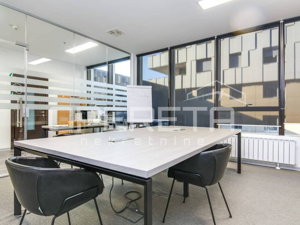 Prostor se sastoji od velikog open space prostora, 3 managerska ureda, sobe za sastanke, 10 phone bootova, kuhinje s blagovaonicom i sanitarnih čvorova. Uredi su u potpunosti opremljeni i namješteni te se kao takvi i daju u zakup.