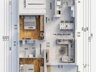 - layout: "open space" concept (kitchen, dining room and living room), utility room / utility room, hallway, two comfortable bedrooms (approx. 11 m2), bathroom and loggia.