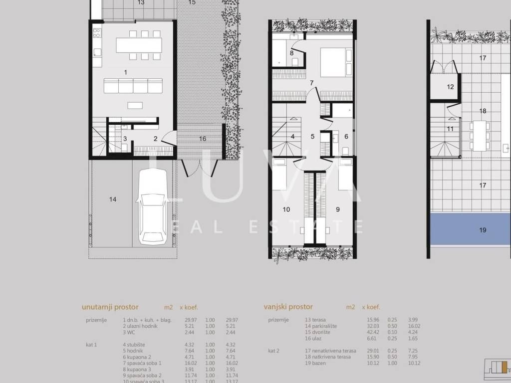 Second floor – open terrace with pool, covered terrace with lounge and dining area, technical room/storage