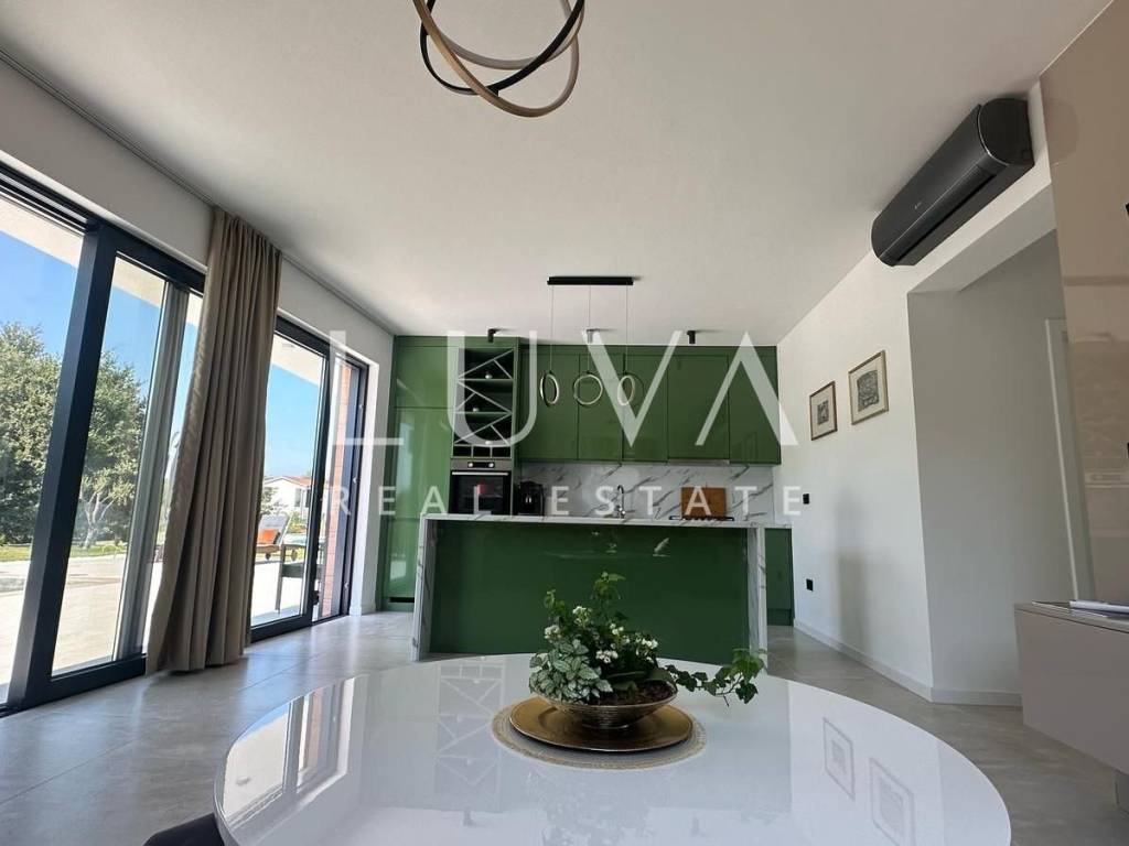 We present a unique opportunity to purchase a newly built villa with a swimming pool, set on a spacious 792 m² plot. This elegant property offers 176 m² of living space, divided into two completely separate apartments, ideal for luxury living or investment.