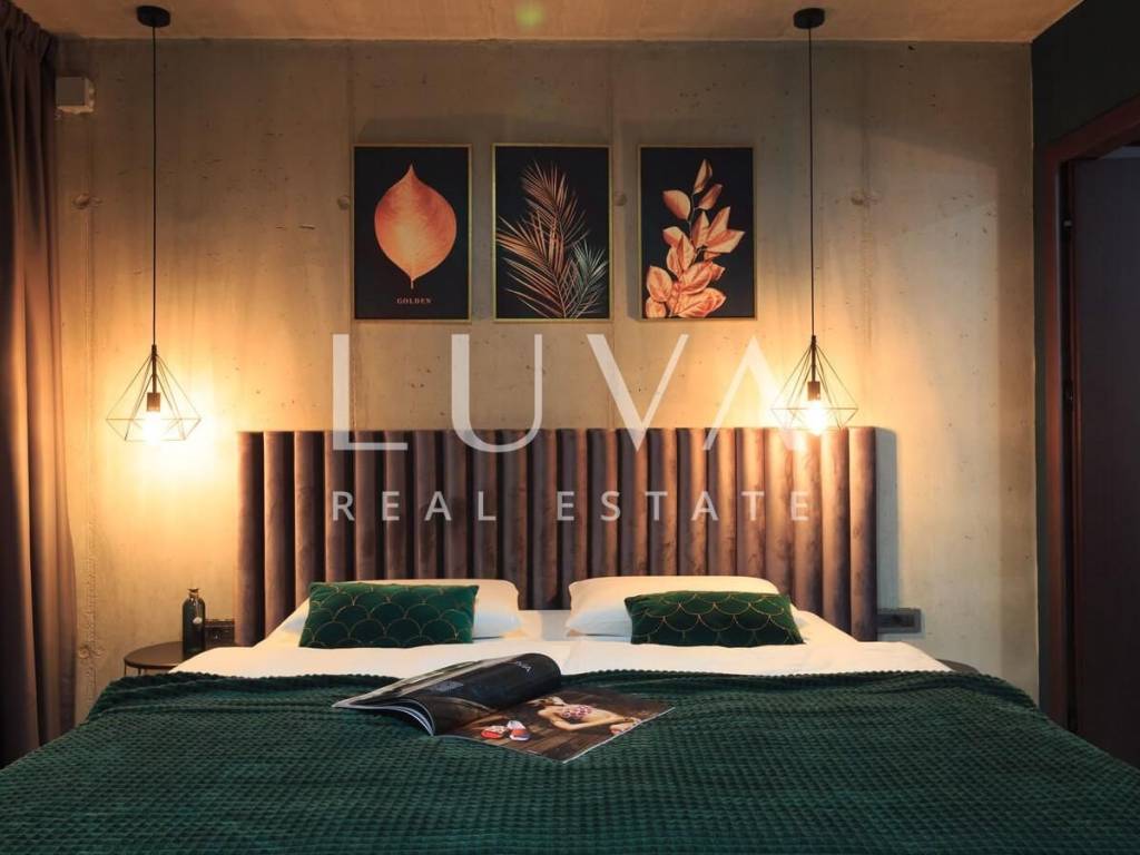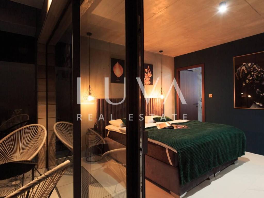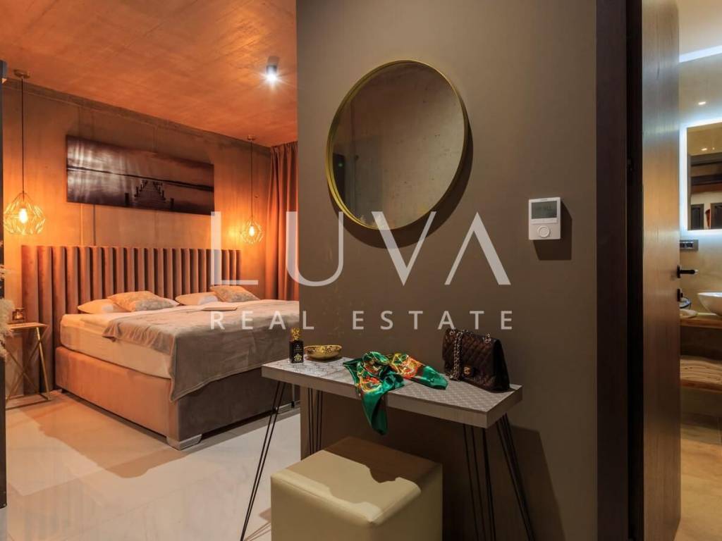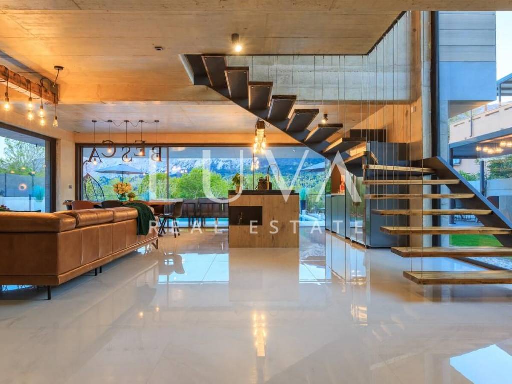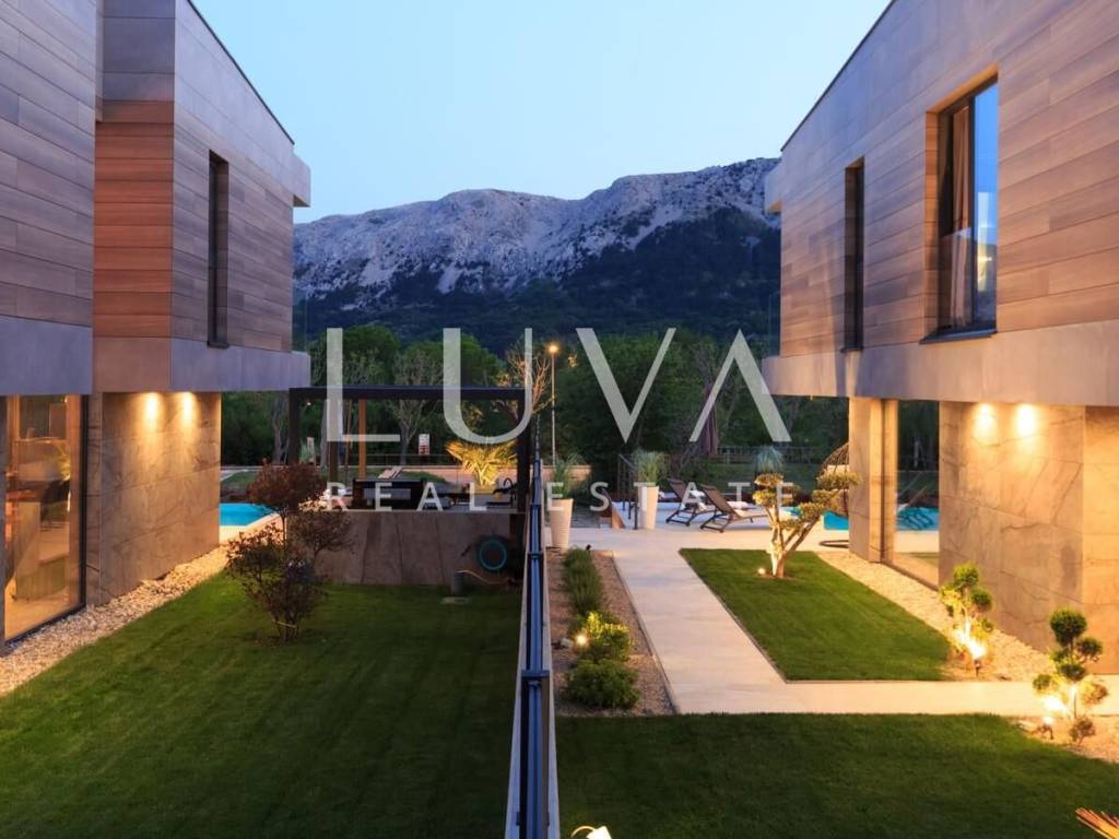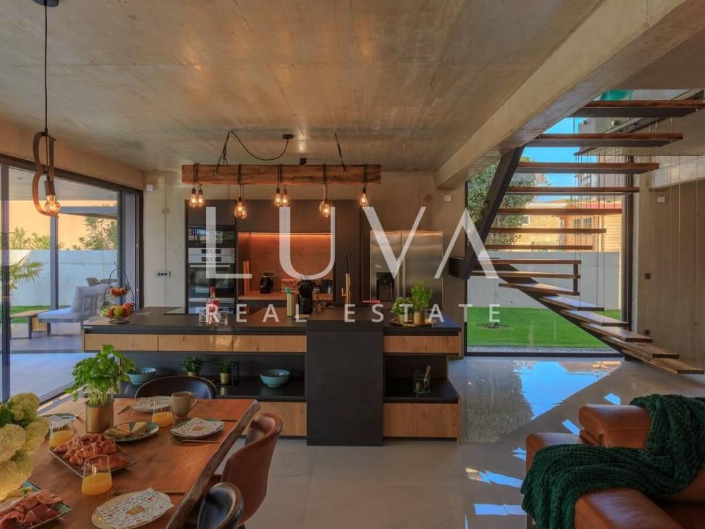 A luxury villa with an area of 280 m² is for sale, located just 500 meters from the sea in Baška, on the island of Krk. The villa spans 2 floors and is situated on a 450 m² property. It has 4 bedrooms with en-suite bathrooms, a spacious living room, a fully equipped kitchen, and a room with a sauna and jacuzzi, with a billiard table in the adjacent room.