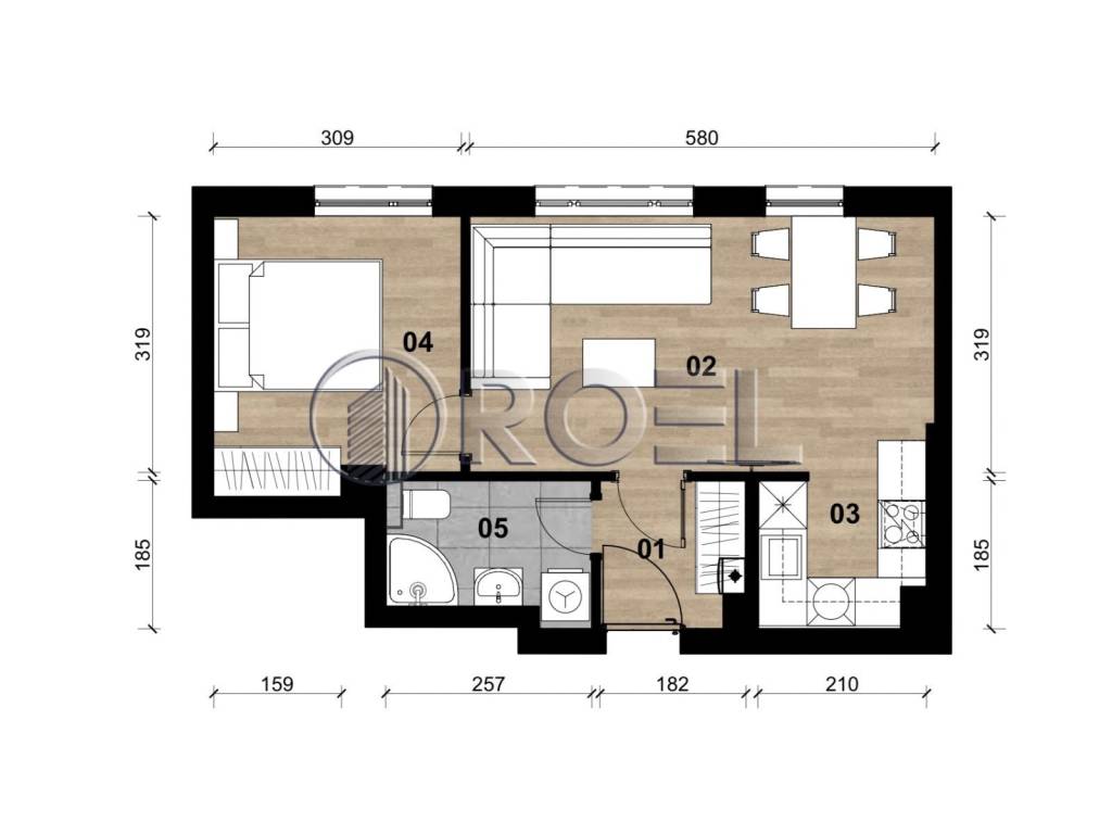 An apartment with an identical floor plan but including a balcony is available on the second floor, with a total saleable area (NSA) of 50.82 m. Other apartments of similar size in this new development in Dubrava are available please visit Roel Real Estate for full availability.