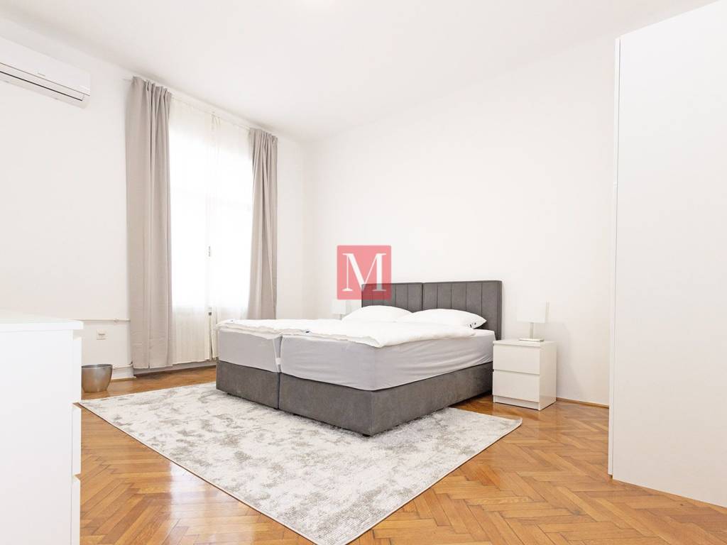 Beautiful, spacious 4-bedroom apartment of 125m2 with a balcony in a prime location in the city center. It consists of an entrance hall, living room, 4 bedrooms, kitchen with dining room, bathroom (shower) and toilet. The apartment is extremely spacious, with high ceilings. It is rented furnished, with the possibility of removing all furniture by agreement. It is located in a quiet location in a courtyard building, which ensures silence and privacy. Long-term rental with a mandatory deposit. Agency fee: 1 month's rent + VAT.