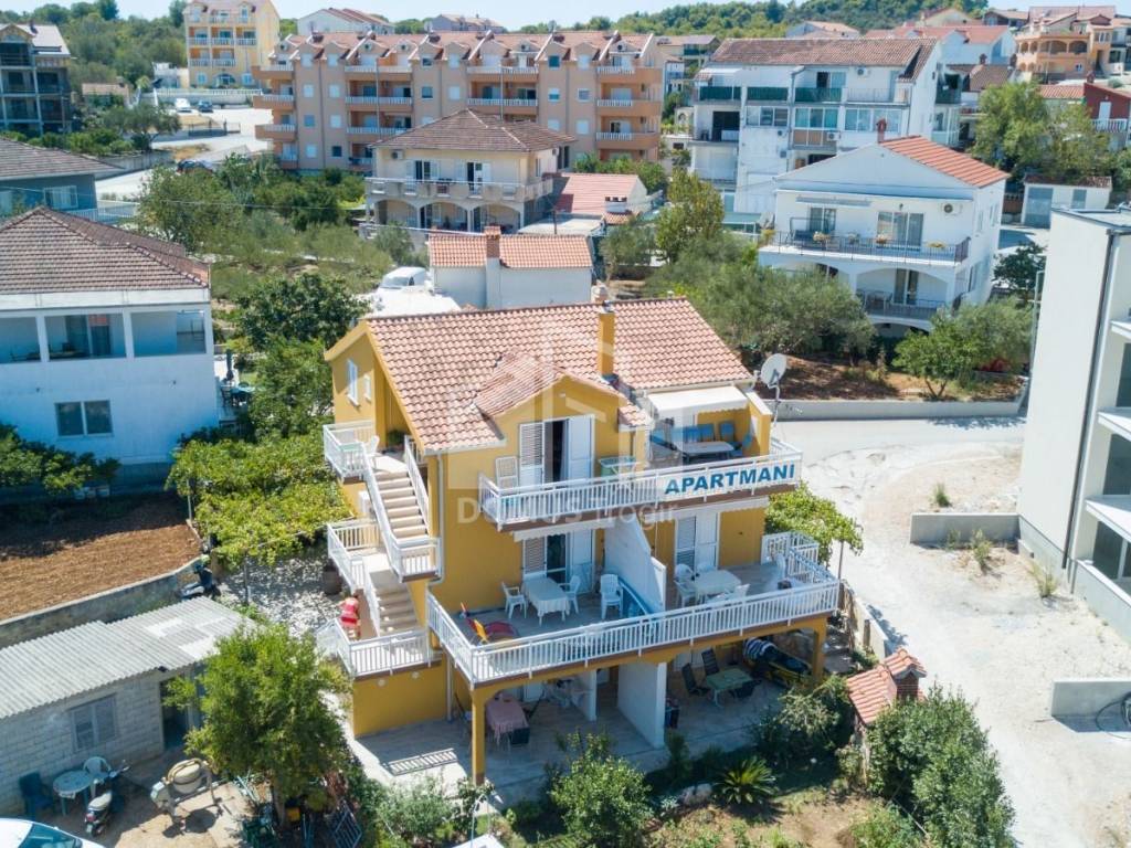 A detached house built in 2005 is for sale, arranged over three floors with a total of five residential units. The property is ideal as an investment (short-term or long-term rental), for a larger family, or for combining private living with rental income. The house features central heating throughout, a solar system with two panels and a 300-liter boiler, three-phase electricity, and a septic tank. External staircases provide separate entrances to the apartments, making subdivision into individual units easier.