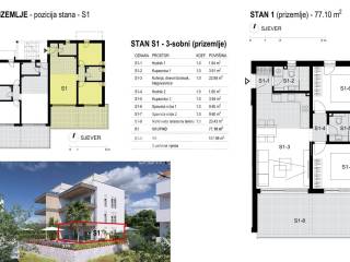 A modern three-bedroom apartment on the ground floor of a new building is for sale, with a total area of 77.10 m, with a spacious private garden of 107.96 m, a covered terrace and two parking spaces. This property offers the feeling of living in a house with all the advantages of living in a modern, well-designed building.