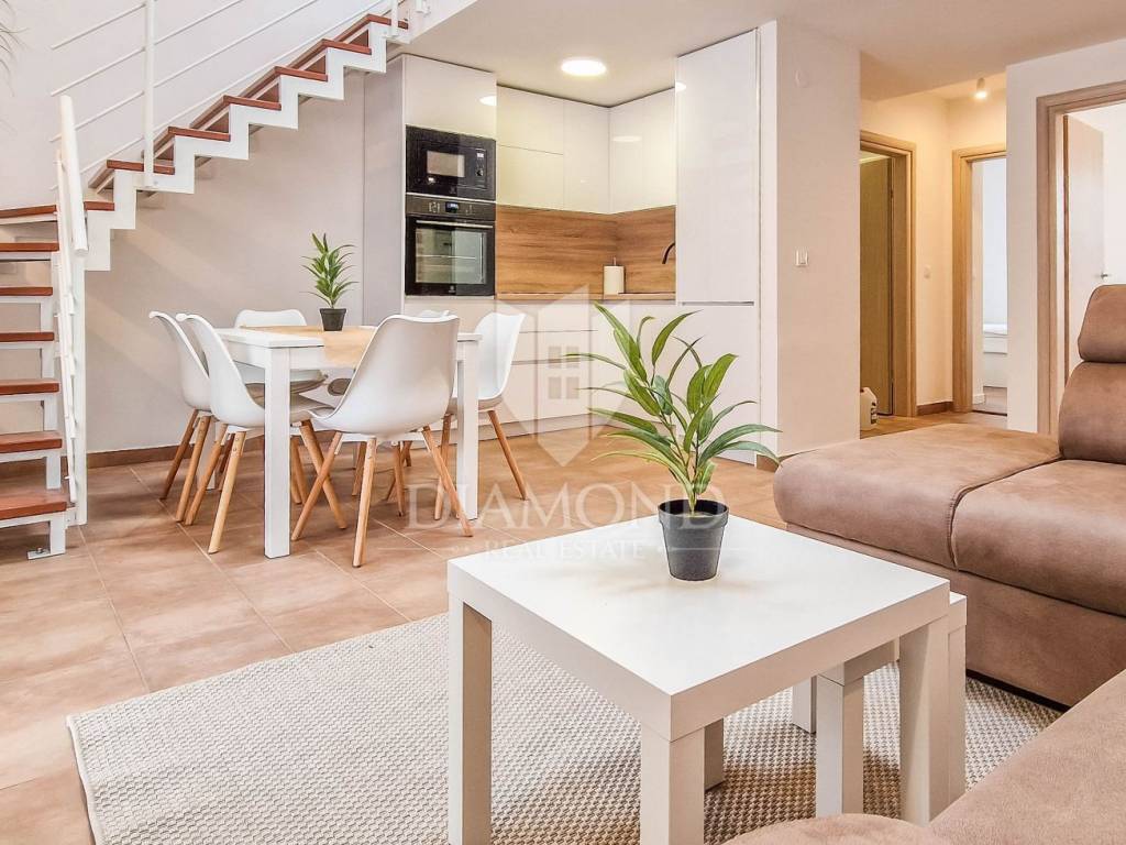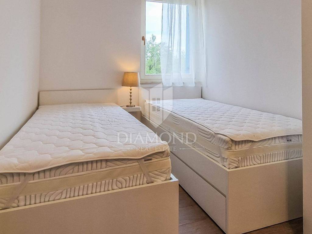 Umag, surroundings, apartment 72 m² in Lovrečica For sale is a brand new, never used apartment of 72 m², located in a quiet part of the settlement of Lovrečica, ideally positioned between Umag and Novigrad. The apartment is located on the first floor of a semi-detached building of 8 apartments, just a 6-minute walk from the beautiful landscaped and natural beach. Apartment characteristics: Area: 72 m² Fully furnished and ready to move in 3 bedrooms 2 modern bathrooms Gallery with additional bedroom and bathroom Terrace: 8 m² Distance from the sea: 500 meters (6 minutes on foot) The apartment is ideal for family life, but also as an investment for tourist rental due to its attractive location near the sea and popular Istrian destinations. For more information and to arrange a viewing, please feel free to contact us.