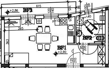 The studio apartment is located on the 1st floor of a new building and consists of a room that combines the kitchen, dining area and living room, a bedroom, a balcony, a bathroom, and its own parking space, with a total area of 36.78 m.