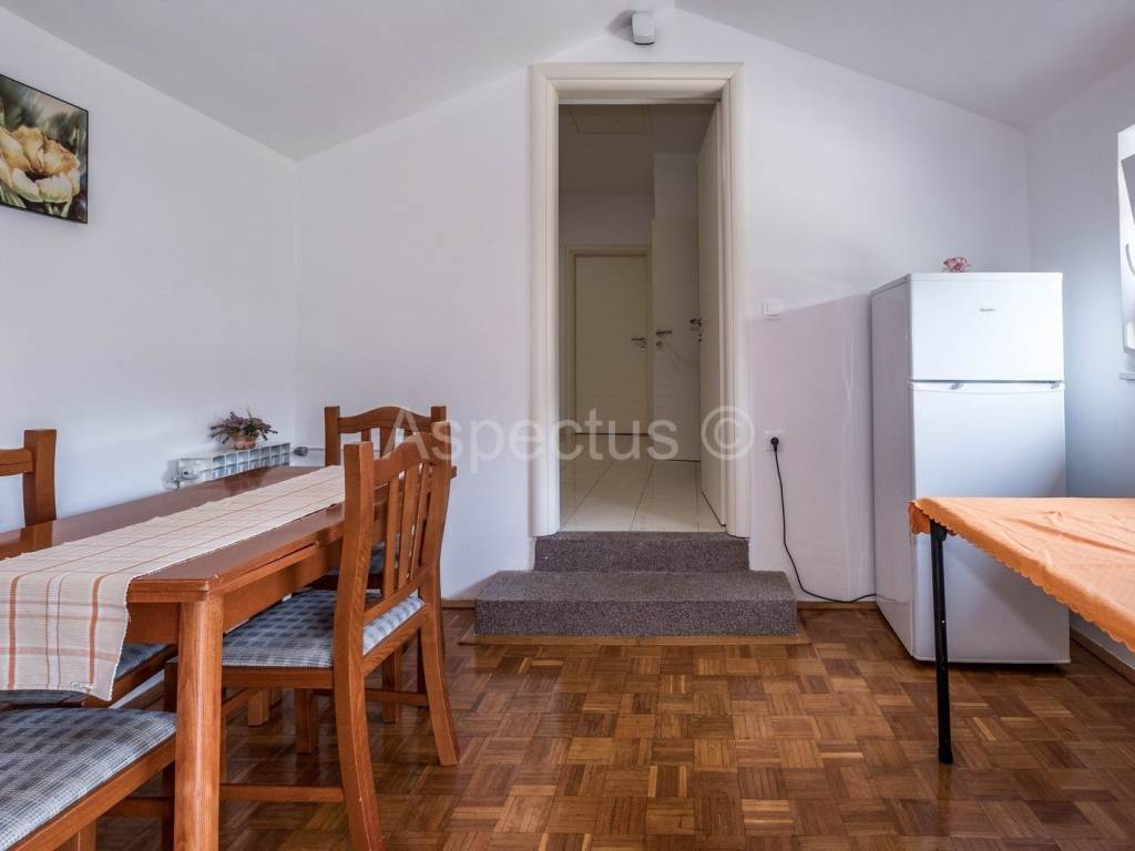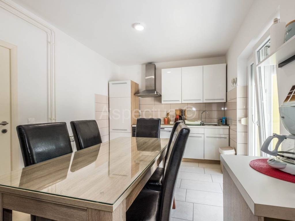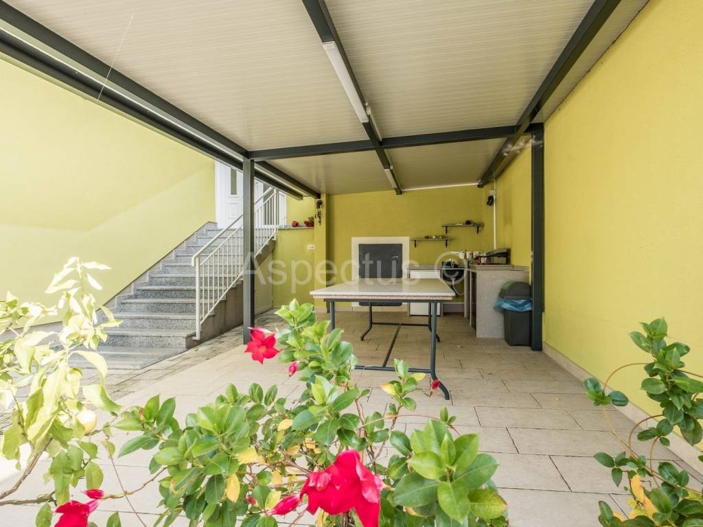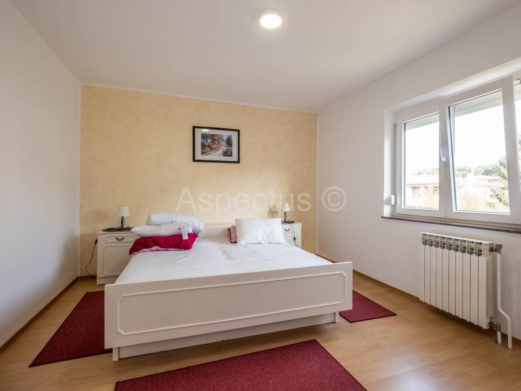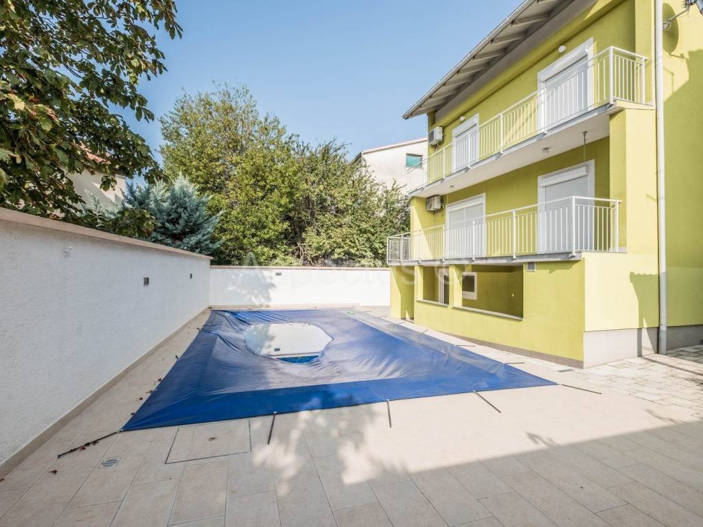 A house with a swimming pool and garden in Pula is for sale. The total area of the house is 220m2, and it consists of the ground floor and the first floor. On the ground floor of the house there is an entrance hall, hallway, kitchen, dining room, living room with access to the balcony, one bedroom, bathroom, while on the first floor there are 4 bedrooms, bathrooms, of which two bedrooms have a balcony, and one bedroom has access to its own terrace. The house also has a semi-basement, which consists of 2 rooms, a terrace and a toilet, which can be converted into an apartment or can be used as a fitness or wellness area. The seller leaves the furniture as a gift to the future owner. At the back of the house's garden there is a swimming pool of 33m2, a sunbathing area, a covered outdoor kitchen and a rest area, while at the front of the house there is a green area, 2 parking spaces and a garage. The yard is completely fenced and provides the necessary privacy. There is a bus stop and a supermarket in the immediate vicinity.