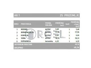 Two-bedroom apartment with a total area of 40.36 m, located in the Dubrava district of Zagreb. It is located on the ground floor of a building with a total of 6 floors. It consists of an entrance hall, living room with kitchen and dining room, one bedroom, bathroom with toilet and a loggia. Oriented to the northwest.