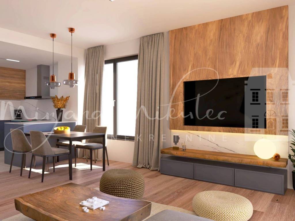 Ovaj prekrasan trosobni apartman svjetlog, otvorenog rasporeda, uz eleganciju i stil s profinjenim završnim detaljima, stvara ugodnu i funkcionalnu atmosferu doma. Apartman je zatvorene stambene površine 68.55 m2, dok sa terasom, parkirnim mjestom i spremištem obračunski iznosi 81.40 m2.