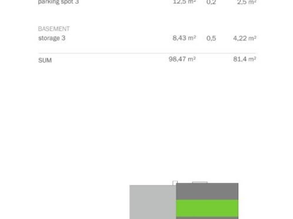 Uz apartman dolazi i prostrano spremište od 8,2 m2 u podrumu zgrade koje je dostupno liftom ili stepenicama te parkirno mjesto u prilaznom dvorištu veličine 12,5 m2 (punionica za električna i hybridna vozila).