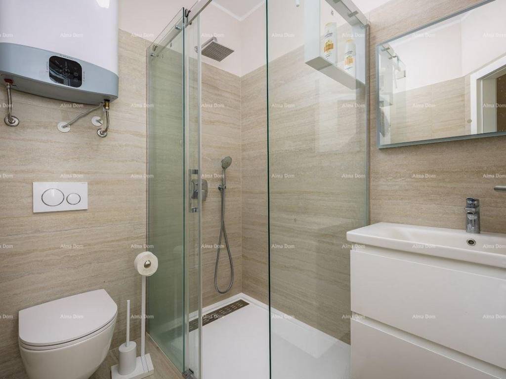 For sale is an apartment on the first floor of a building with a net usable area of approx. 110 m2, Poreč. It consists of: hallway, 3 bedrooms, bathroom, kitchen and living room. For more information, please contact:
