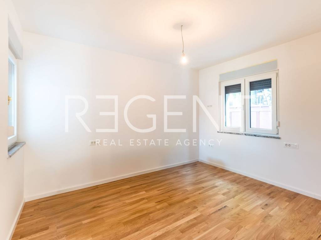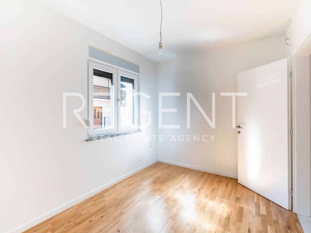 A modern house is for sale, located in a quieter street in the Rudeš neighborhood, with a total living area of 150 m², on a plot of 333 m². The ground floor features an open living space with a kitchen and dining area, two bedrooms, a bathroom, a hallway, and a covered terrace of 16.6 m². The attic has an additional space of about 40 m². The house is equipped with underfloor heating via a heat pump, and an A+ energy certificate guarantees high energy efficiency. The floors are covered with a combination of parquet and ceramics, and anthracite-colored PVC joinery is installed on the outside. The house also comes with one parking space. It is located in a well-connected location – the bus stop is 300 meters away, the elementary school is 850 meters away, and the kindergarten is 600 meters away. For more information or to arrange a viewing, please feel free to contact us.
