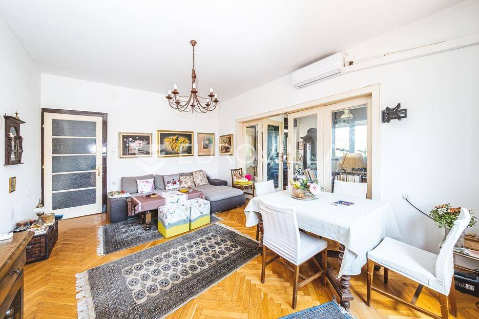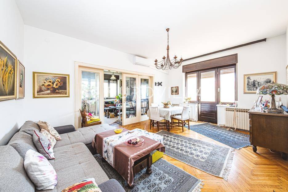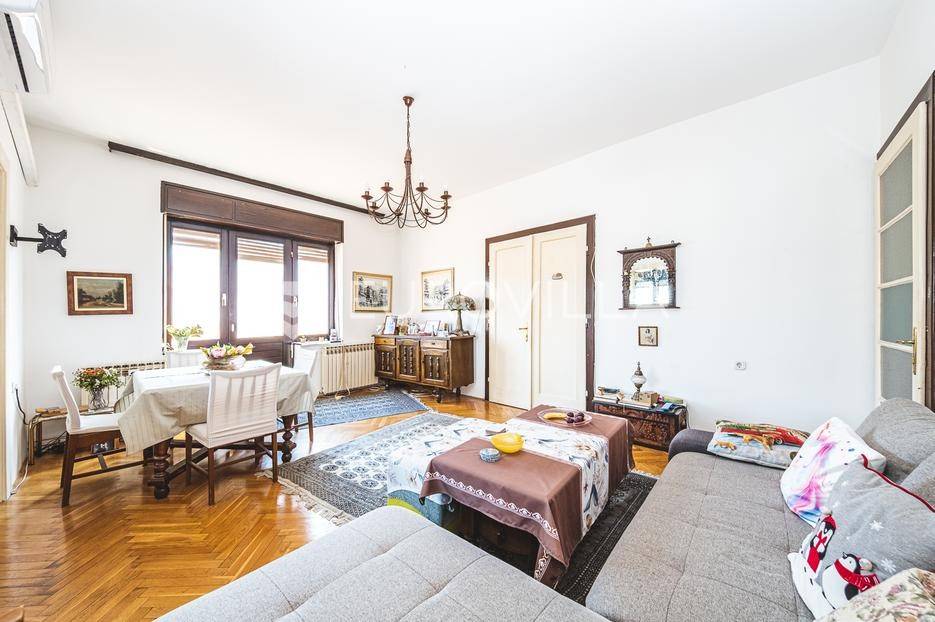 Šalata, četverosoban stan zatvorene površine 122,92 m2 s tri balkona na drugom katu odlično održavane zgrade starije gradnje. Pripada mu vrt od 5,50 m2 u dvorištu zgrade.Sastoji se od ulaznog hodnika, dnevnog boravka s blagovaonicom i izlazom na balkon 4,94 m2, prostrane odvojene kuhinje s balkonom 1,69 m2, dvije spavače sobe, radne/spavače sobe, garderobe, kupaonice, gostinjskog wc-a i dodatnog balkona 4,58 m2. Stanu je potrebna potpuna renovacija.Puno danjeg svijetla, visina stropova 3,00 m, orijentacija sjever-zapad - istok. Nalazi se u neposrednoj blizina škole, vrtića, dućana, javnog prijevoza i svih sadržaja potrebnih za kvalitetno i mirno obiteljsko življenje.Za sve informacije stojimo na raspolaganju.... Više na eurovilla.hr, ID: 146860