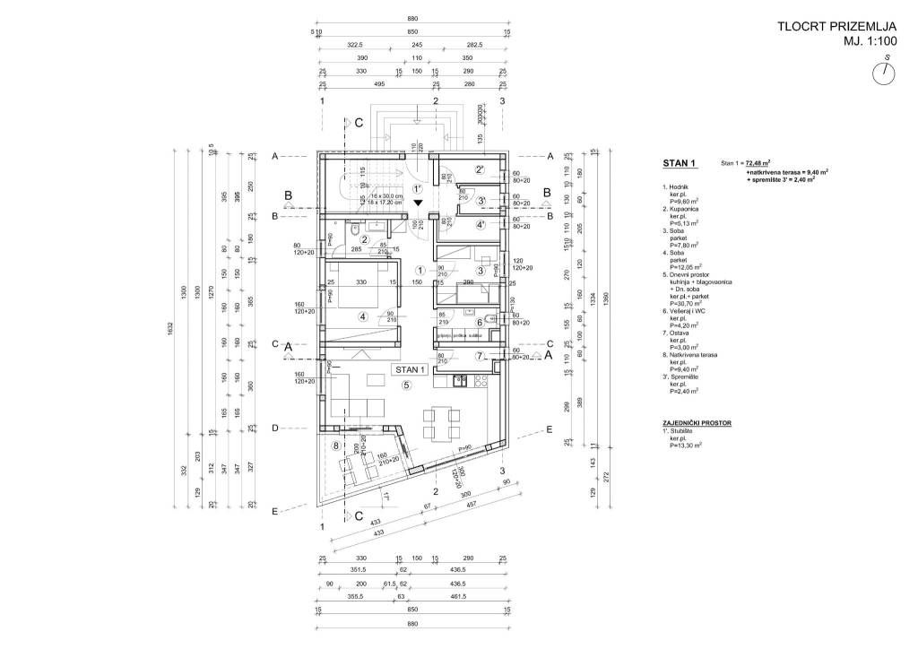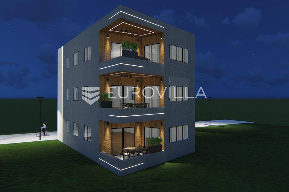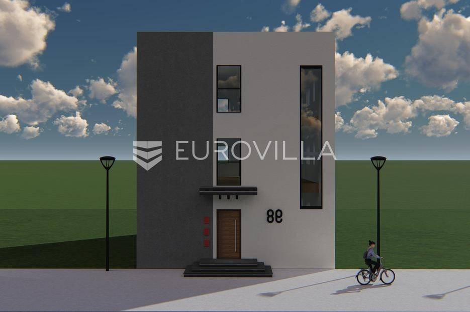 Ivanić-Grad, moderna novogradnja s tri nadzemne etaže (prizemlje i dva kata) i tri stana, projektirana je da zadovolji energetski razred A. Useljenje proljeće 2026. godine. RIJETKOST NA TRŽIŠTU NEKRETNINA - SVAKI STAN IMA VLASTITU SOLARNU ELEKTRANU - Izuzetno niski računi za energente.STAN 1 - trosoban stan u prizemlju zatvorene površine 72,48 m2, natkrivena terasa 9,40 m2, spremište 2,40 m2, parkirno mjesto 12,50 m2. Ukupno obračunski netto korisna površina 81,50 m2.Sastoji se od ulaznog hodnika, dnevnog boravka s kuhinjom i blagovaonicom otvorenog tlocrta s izlazom na natkrivenu terasu, dvije spavaće sobe, kupaonice, ostave i vešeraja s dodatnim wc-om.Grijanje, hlađenje - dizalica topline (grijanje, hlađenje i voda), te podno grijanje u svim prostorijama.Pametni sustav Loxone za inteligentno upravljanje rasvjetom, grijanjem, hlađenjem, roletama preko mobitela. Cijeli objekt će biti pod videonadzorom, a stan pod alarmnim sustavom i video portafonom.Podovi interijera - visokokvalitetni laminat minimalne debljine 11mm, a u kupaonicama, kuhinjama i toaletima - visokokvalitetna keramika. Vanjski prostori na terasama i balkonima: kamen, keramika.Svi vanjski otvori (prozori i vrata) će biti ostakljeni "izo" staklom za visoku energetsku učinkovitost s minimalno 5 zračnih komora i 3 izo stakla, te aluminijskim roletama na elektro pogon. Vanjska termo izolacija s izolacijskom oblogom 10 cm.U neposrednoj blizini lokacije je gradski vrtić i osnovna škola, sportska dvorana, bazen, fitness centar, dom zdravlja, policijska postaja, pošta, ljekarne, trgovine i sl. Položajem, sadržajima i prometnom povezanošću projekt ima kvalitete naselja centra grada, dok zatvorenim karakterom, razinom privatnosti mirnoga obiteljskog naselja udaljenog od gradske vreve.Za sve ostale informacije stojim na raspolaganju.... Više na eurovilla.hr, ID: 171187