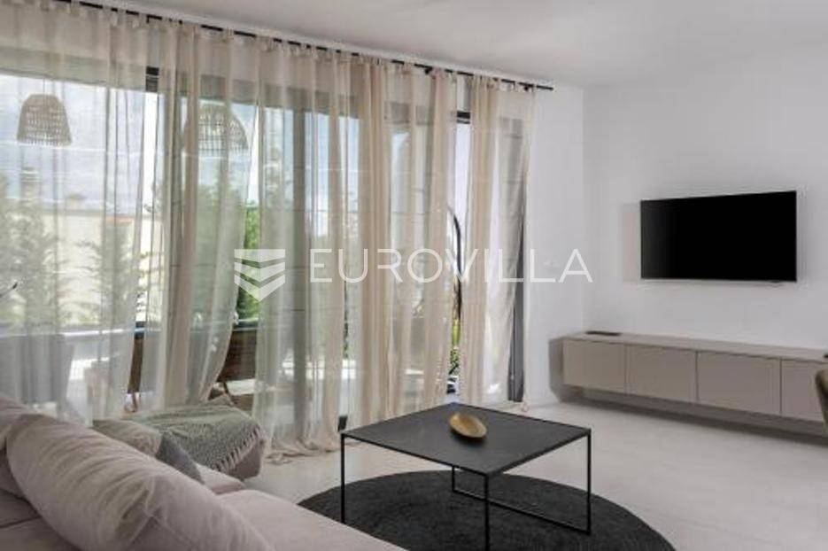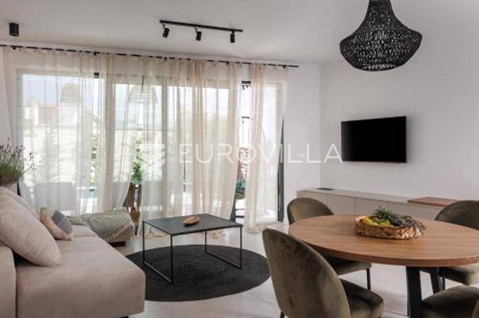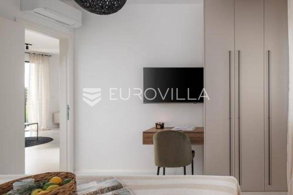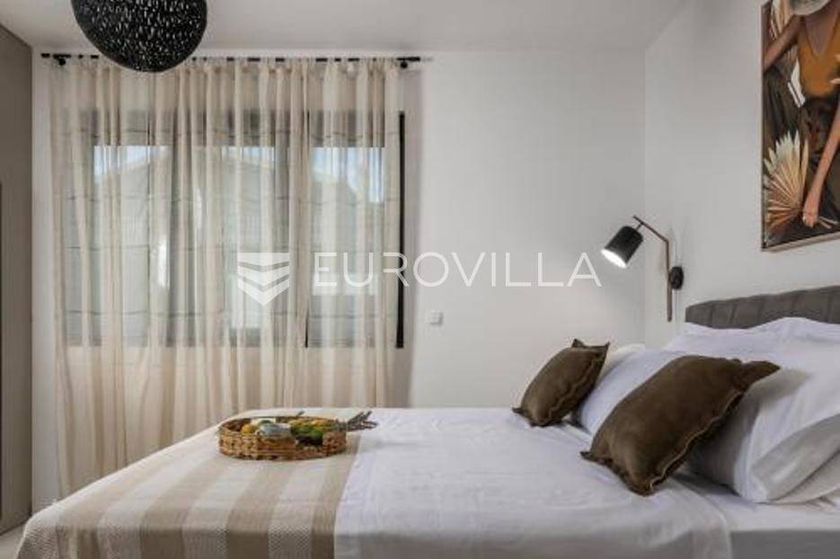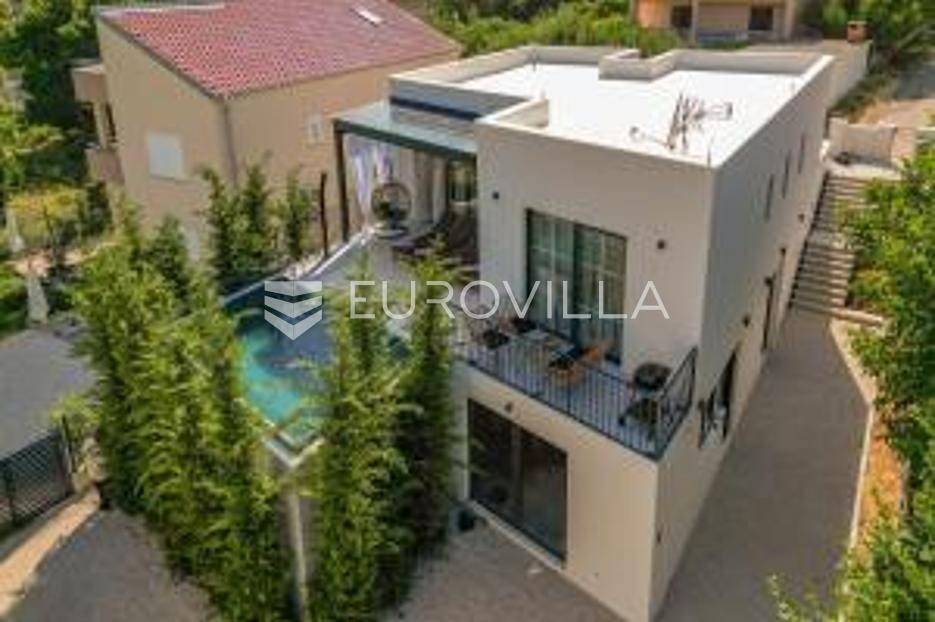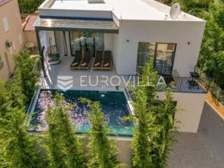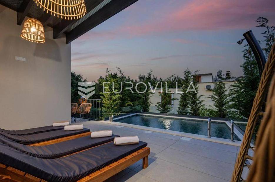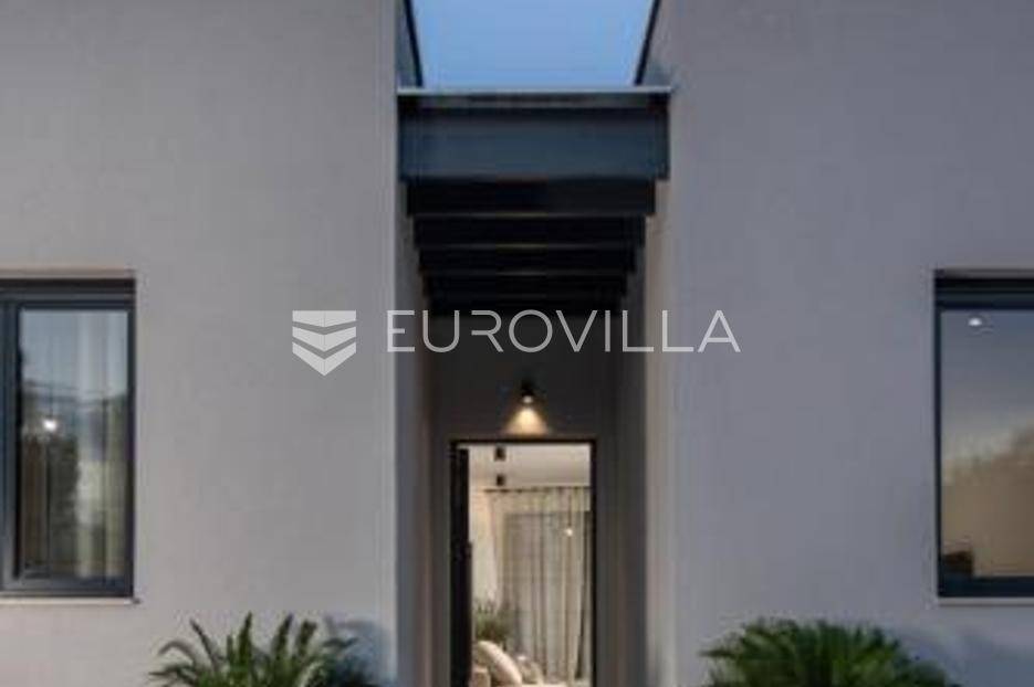 Zadar, Pridraga - Moderna luksuzna vila smještena svega 40 m od mora, s otvorenim panoramskim pogledom. Ukupne stambene površine 87 m², raspoređena na više etaža, nudi dnevni boravak s kuhinjom i blagovaonicom, dvije spavaće sobe s vlastitim kupaonicama, te vrhunski dizajn i opremu.Vanjski prostor uključuje bazen, sunčalište, uređeni vrt i terasu, idealne za opuštanje. Nekretnina se prodaje potpuno namještena, uz osigurano parkirno mjesto. Izvrsna lokacija u blizini Novigrada i Zadra, zračna luka udaljena 22 km - savršeno za odmor ili turističku investiciju.Za sva dodatna pitanja slobodno nas kontaktirajte... Više na eurovilla.hr, ID: 222119