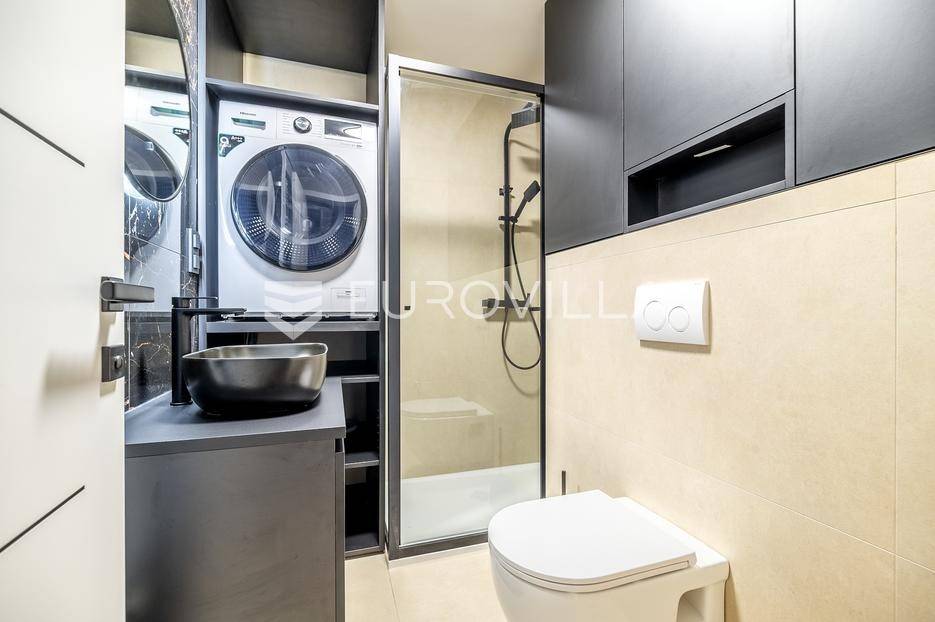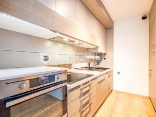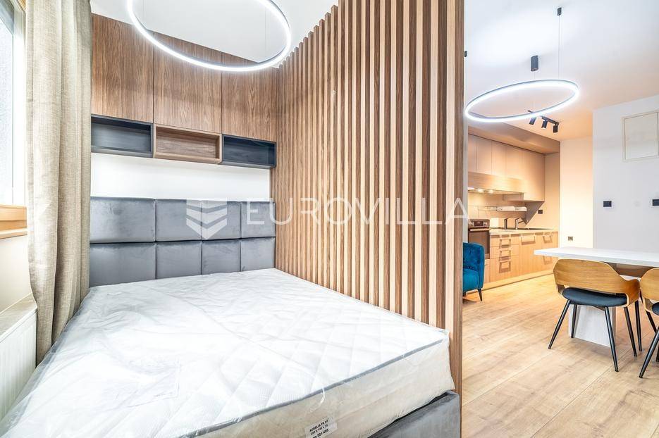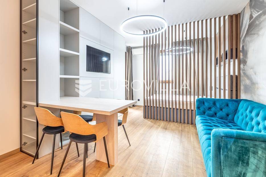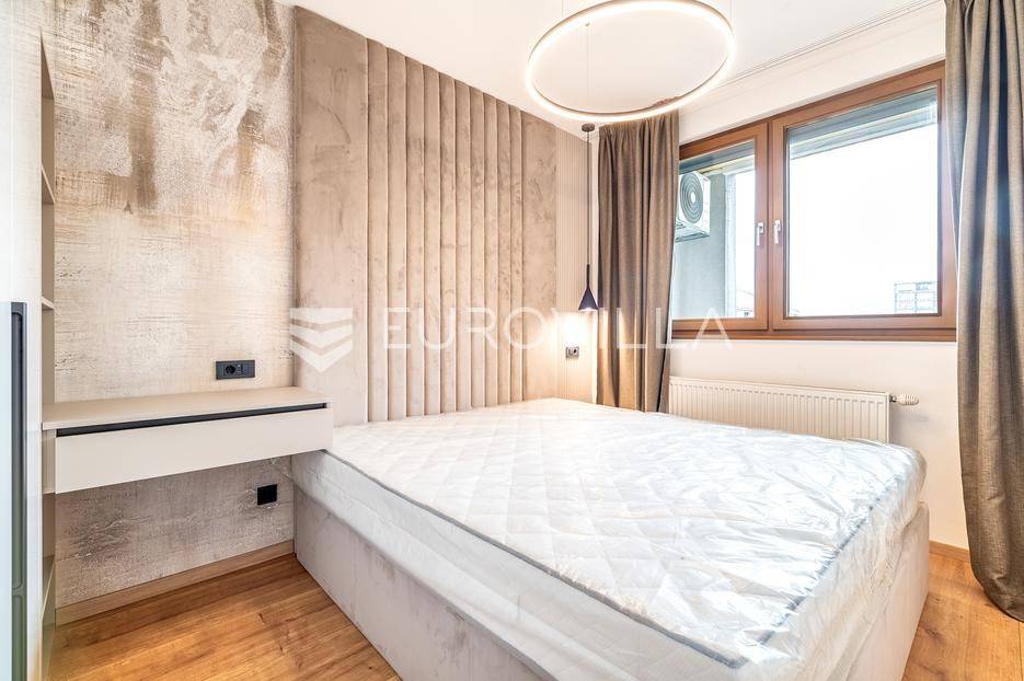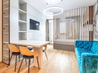 Rapska, moderno uređen dvosoban stan na VIII. katu zgrade novije gradnje s liftom.Sastoji se od ulaznog prostora s ugradbenim ormarima, open space kuhinje s blagovaonicom i dnevnim prostorom, te odvojenim spavaćim dijelom s izlazom na loggiu, kupanice i spavaće sobe. Stanu pripada vanjsko parkirno mjesto i spremište.Kompletno namješten namještajem po mjeri, te svim potrebnim kućanskim aparatima.Nalazi se na odličnoj mikrolokaciji u neposrednoj blizini poslovne zone na Radničkoj cesti te svih sadržaja potrebnih za život.Stojimo Vam na raspolaganju za sva dodatna pitanja.... Više na eurovilla.hr, ID: 248922