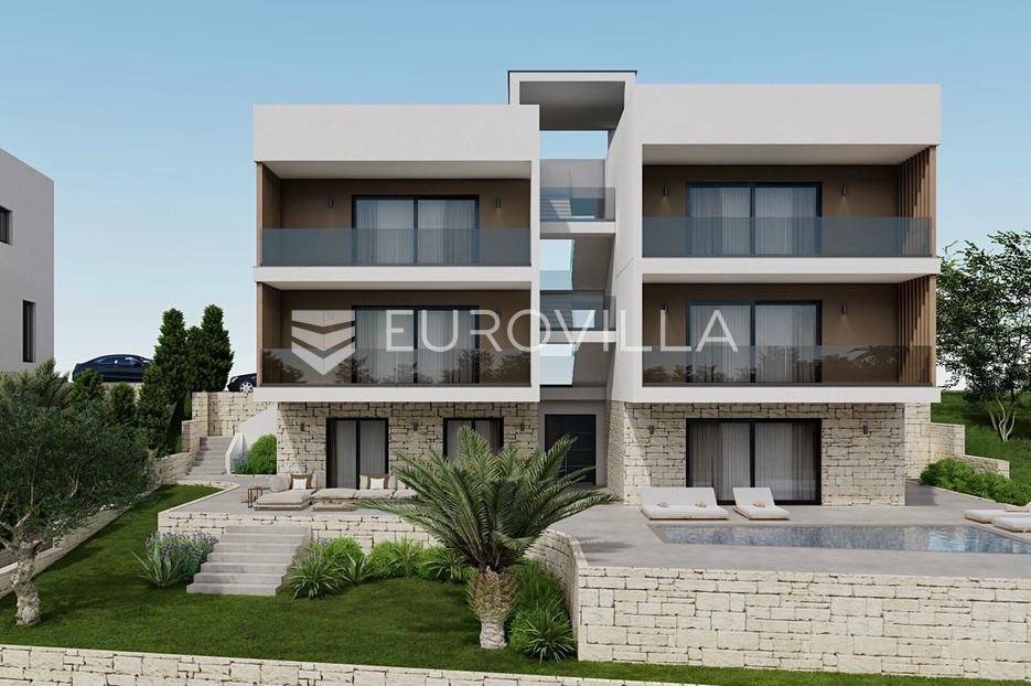 Trogir, Čiovo, ekskluzivna prodaja dvosobnog stana s pripadajućom krovnom terasom, položenog na drugoj etaži manjeg stambenog objekta s ukupno pet stambenih jedinica.Stan je podijeljen na hodnik, kupaonicu, dvije spavaće sobe i dnevni dio ( kuhinja/ blagovaonica/ dnevni boravak ) s direktnim izlazom na natkriveni balkon površine 14 m2.Zatvorena stambena površina iznosi 55, 29 m2.Stanu pripada privatna krovna terasa površine 69, 90 m2 s otvorenim pogledom na more, te jedno vanjsko parkirno mjesto.Gradnja objekta je krenula u listopadu, a useljenje je predviđeno u prvoj polovici 2027. godine.Izvrsna mikrolokacija, u blizini centra Trogira, te samo nekoliko koraka od uređene plaže.Za sve dodatne informacije, stojimo vam na raspolaganju.... Više na eurovilla.hr, ID: 289843