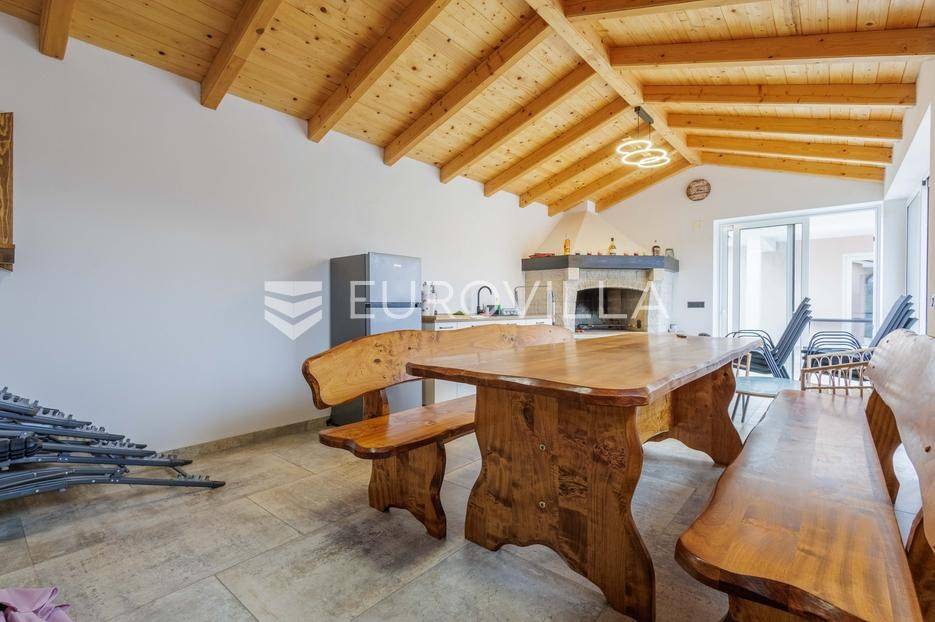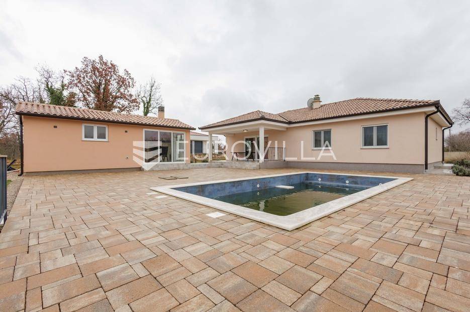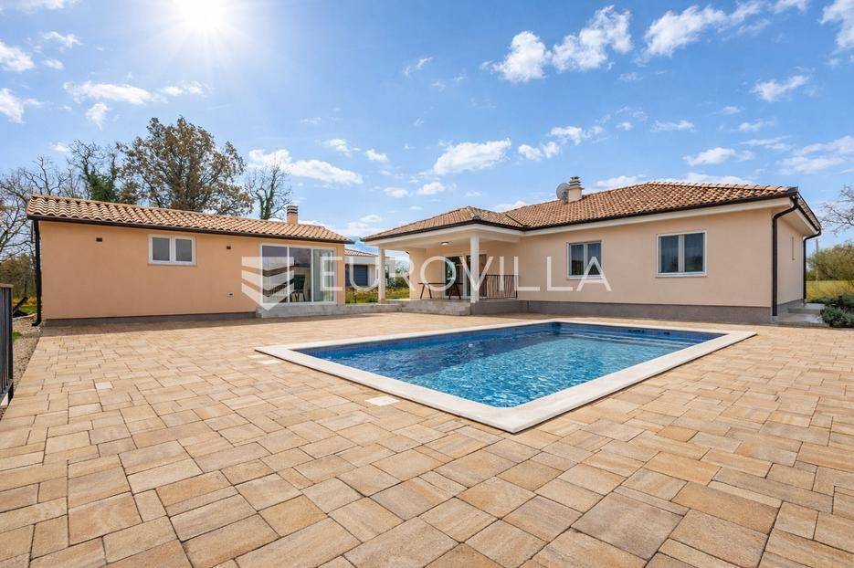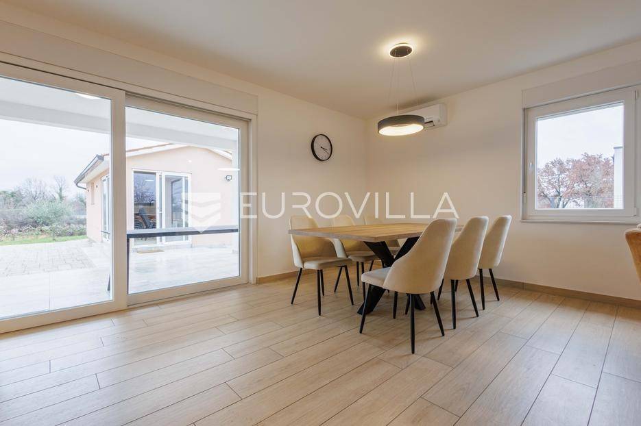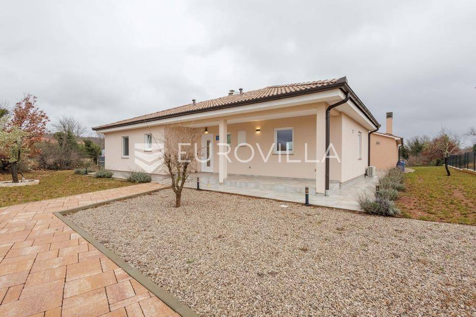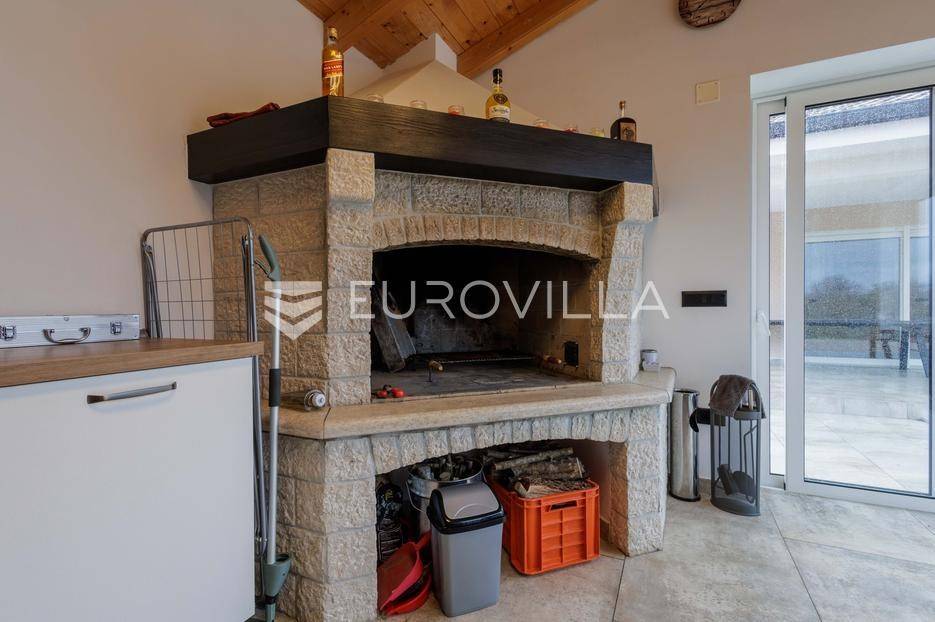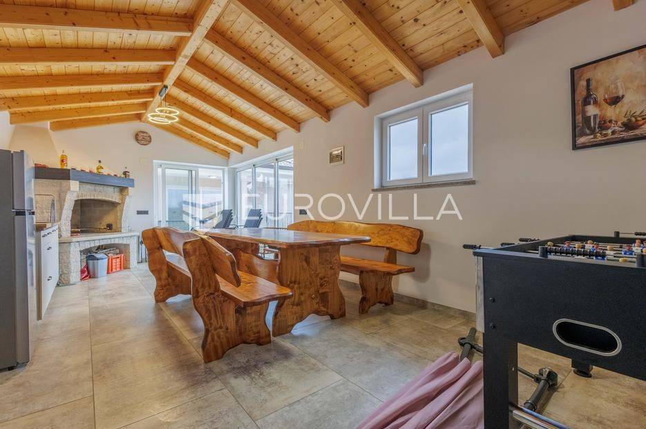 Na prodaju je moderna vila površine 152 m², izgrađena 2023. godine, smještena u mirnom selu vrlo blizu centra Labina. Površina okućnice iznosi 3.855 m2.Kuća se sastoji od 3 spavaće sobe, 2 kupaonice i dodatnog toaleta. Prostrani dnevni dio obuhvaća kuhinju, blagovaonicu i dnevni boravak s izlazom na natkrivenu terasu koja se nastavlja na bazen površine 32 m² i sunčalište – savršeno mjesto za opuštanje i druženje.Grijanje i hlađenje osigurano je putem klima uređaja, a ugodan ugođaj dodatno može pružati kamin, s mogućnošću ugradnje grijanja na drva ili pelete. Kuća ima vrhunsku toplinsku izolaciju debljine 30 cm, što jamči energetsku učinkovitost i niske troškove održavanja.Na velikom, potpuno ograđenom građevinskom zemljištu površine 3.855 m² nalazi se i pomoćni objekt uređen kao konoba s ognjištem i velikim blagovaonskim stolom, idealno za druženja i obiteljske proslave. Prostranost parcele omogućuje i izgradnju dodatnih kuća, što ovu nekretninu čini izvrsnom prilikom za investiciju.Kuća dolazi s 30 godina garancije.Mirna lokacija u prirodnom okruženju pruža potpuni mir i privatnost, uz blizinu svih sadržaja Labina i Rapca.Javite nam se za više detalja i razgled!... Više na eurovilla.hr, ID: 320512