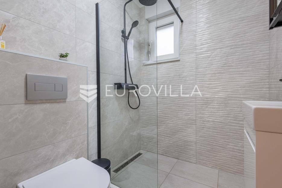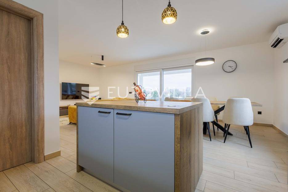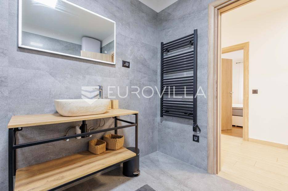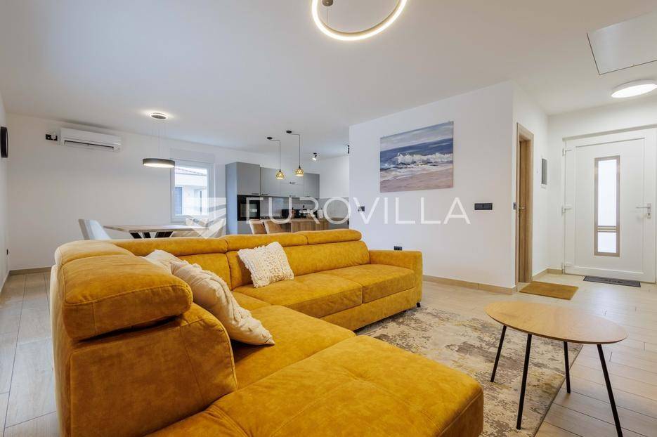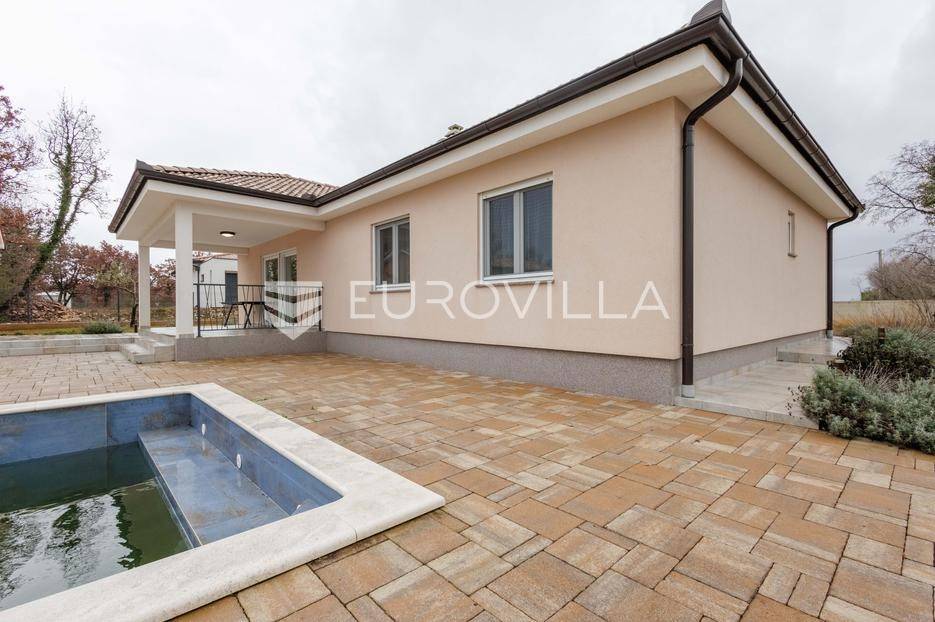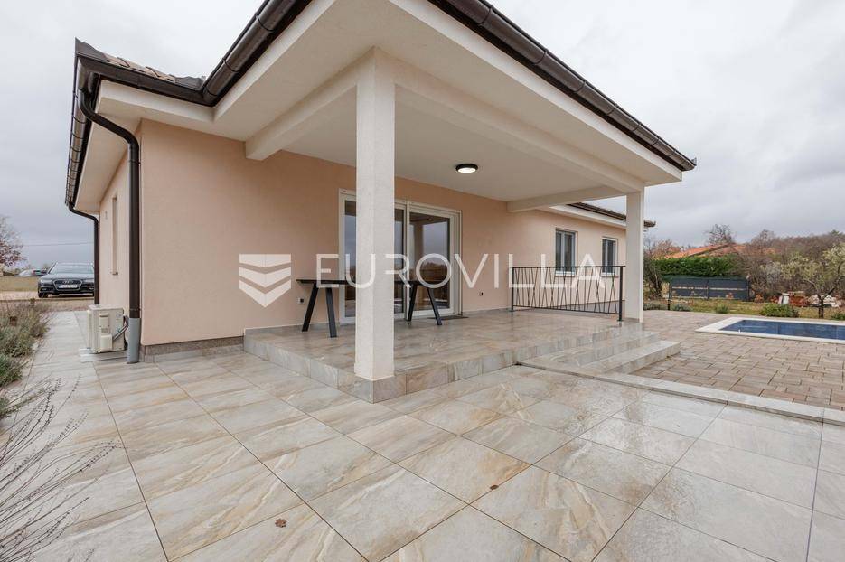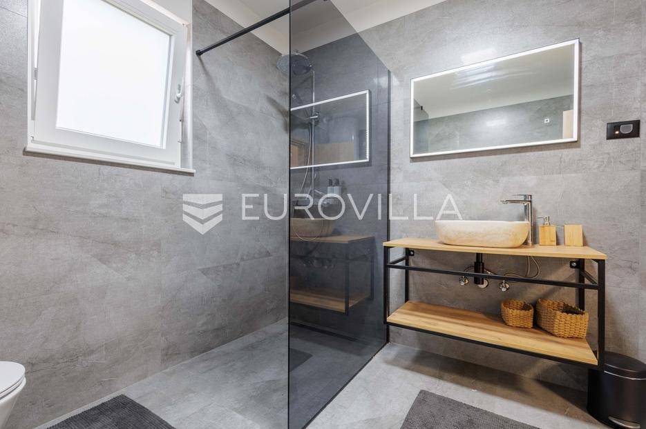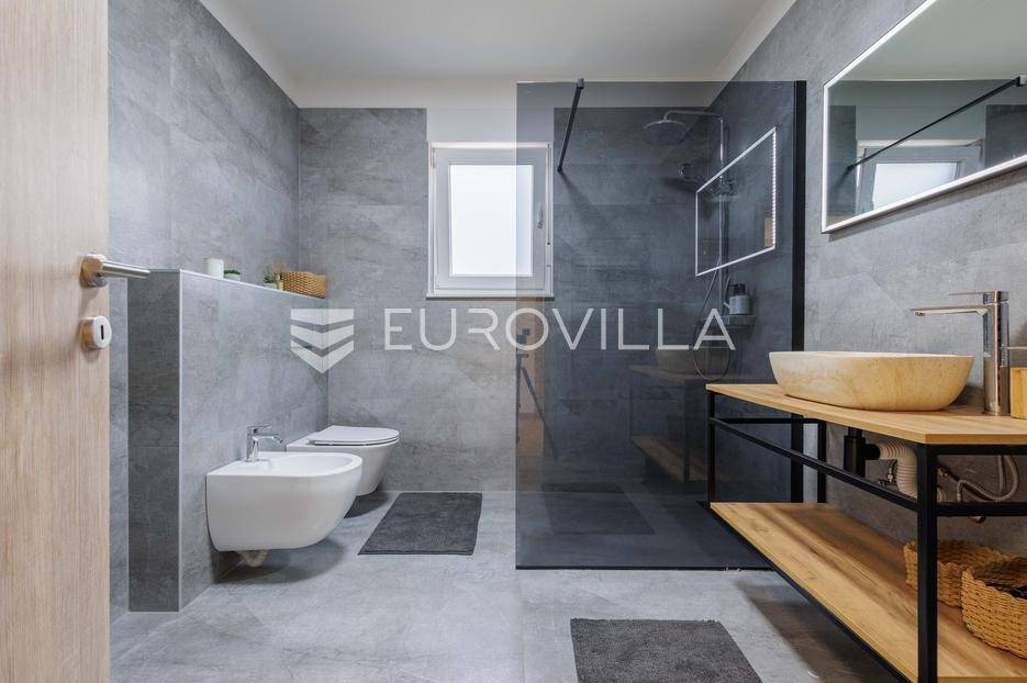 Na prodaju je moderna vila površine 152 m², izgrađena 2023. godine, smještena u mirnom selu vrlo blizu centra Labina. Površina okućnice iznosi 3.855 m2.Kuća se sastoji od 3 spavaće sobe, 2 kupaonice i dodatnog toaleta. Prostrani dnevni dio obuhvaća kuhinju, blagovaonicu i dnevni boravak s izlazom na natkrivenu terasu koja se nastavlja na bazen površine 32 m² i sunčalište – savršeno mjesto za opuštanje i druženje.Grijanje i hlađenje osigurano je putem klima uređaja, a ugodan ugođaj dodatno može pružati kamin, s mogućnošću ugradnje grijanja na drva ili pelete. Kuća ima vrhunsku toplinsku izolaciju debljine 30 cm, što jamči energetsku učinkovitost i niske troškove održavanja.Na velikom, potpuno ograđenom građevinskom zemljištu površine 3.855 m² nalazi se i pomoćni objekt uređen kao konoba s ognjištem i velikim blagovaonskim stolom, idealno za druženja i obiteljske proslave. Prostranost parcele omogućuje i izgradnju dodatnih kuća, što ovu nekretninu čini izvrsnom prilikom za investiciju.Kuća dolazi s 30 godina garancije.Mirna lokacija u prirodnom okruženju pruža potpuni mir i privatnost, uz blizinu svih sadržaja Labina i Rapca.Javite nam se za više detalja i razgled!... Više na eurovilla.hr, ID: 320512