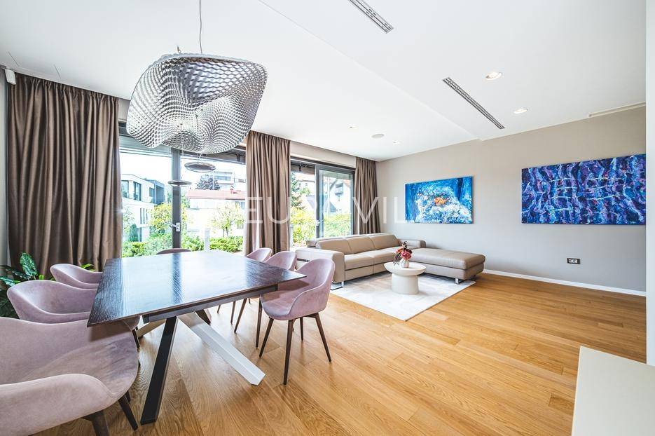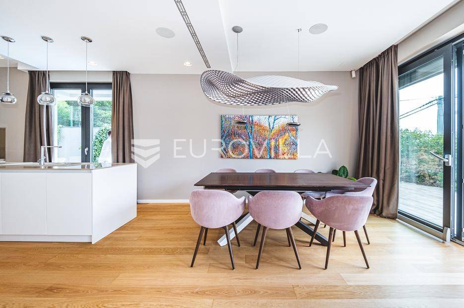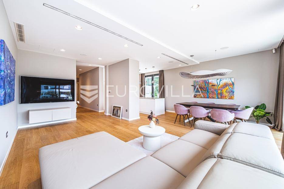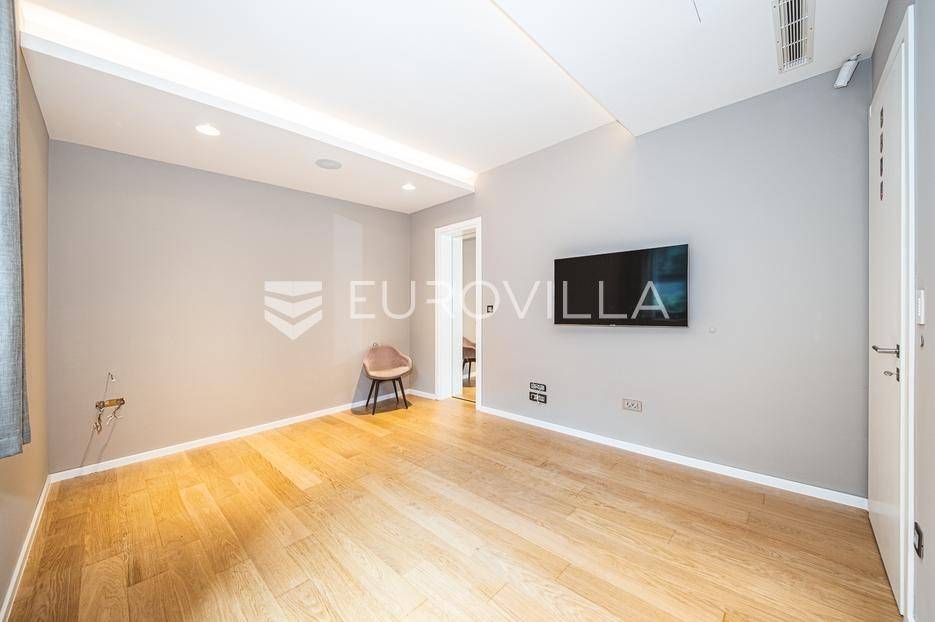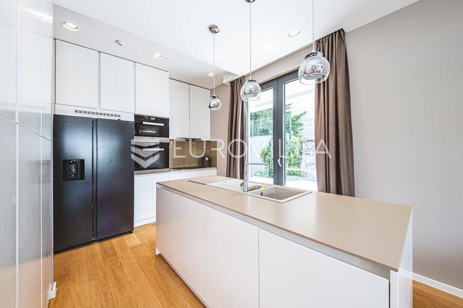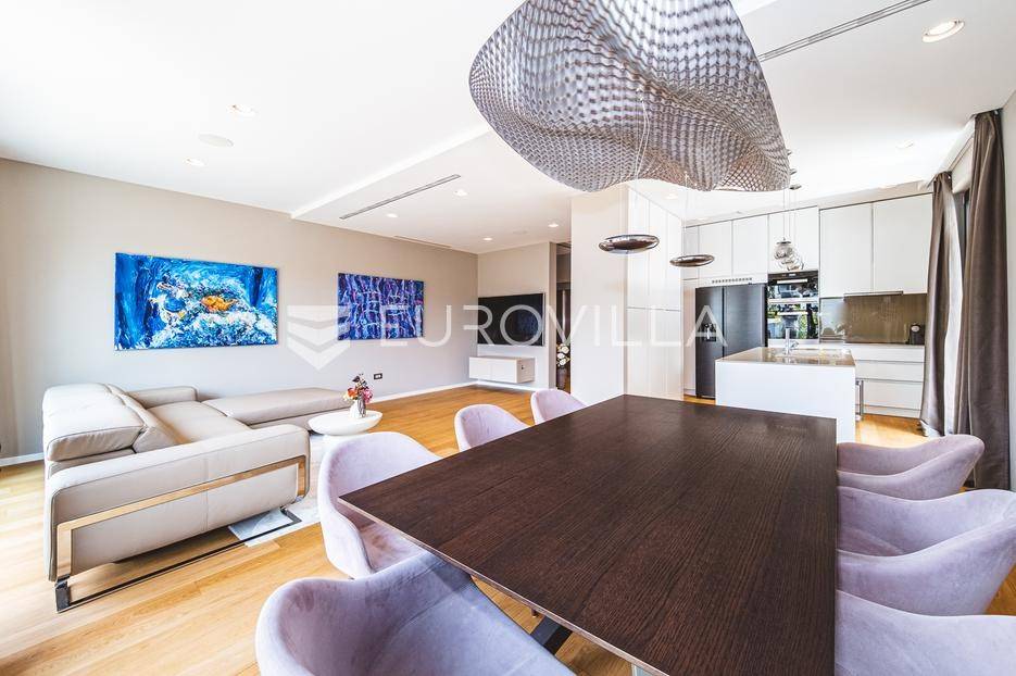 U rezidencijalnom dijelu Šalate, u modernoj vili s ukupno tri stana, iznajmljuje se prekrasan četverosoban stan smješten na prvom katu.Stan zatvorene površine 127 m² sastoji se od ulaznog hodnika, garderobe, prostranog dnevnog boravka s kuhinjom i blagovaonicom, master spavaće sobe sa kupaonicom i garderobom, 2 spavaće sobe te kupaonice.Na raspolaganju su prostrana terasa od 90 m², privatni vrt s bazenom površine 20 m², dva garažna parkirna mjesta te spremište i vešeraj. Ukupna obračunska površina iznosi 190 m².Stan je luksuzno namješten i opremljen vrhunskim materijalima, a svojim sadržajem i uređenjem pruža savršenu udobnost za obiteljski život.... Više na eurovilla.hr, ID: 324795