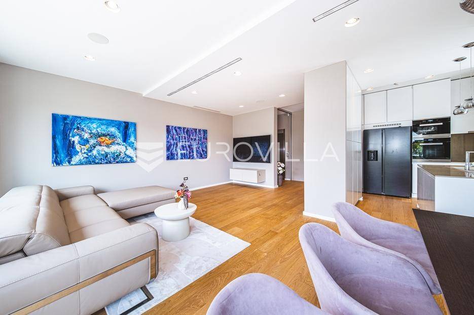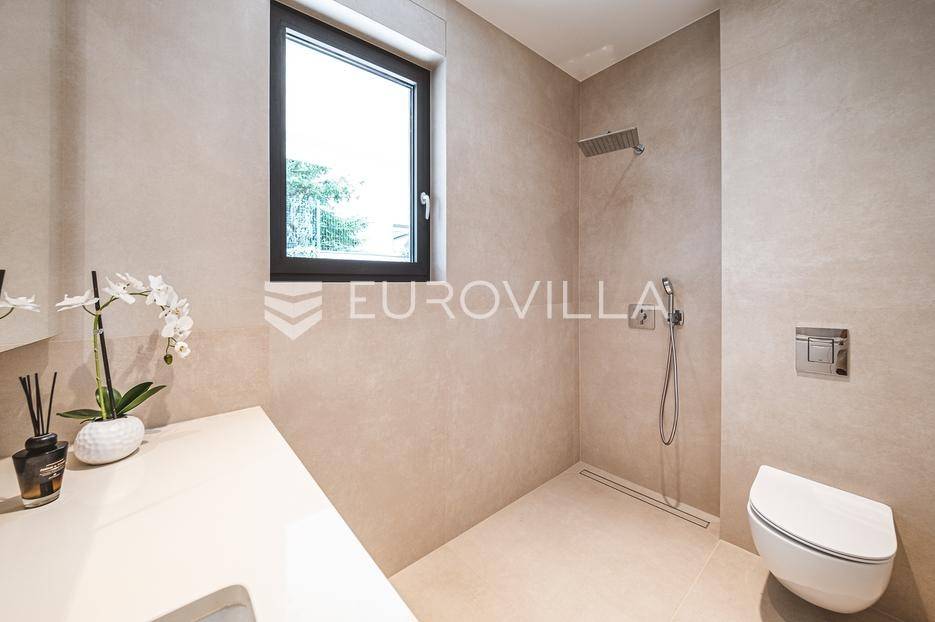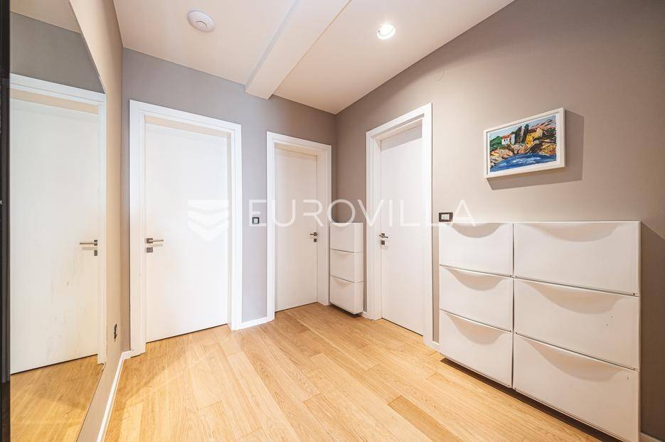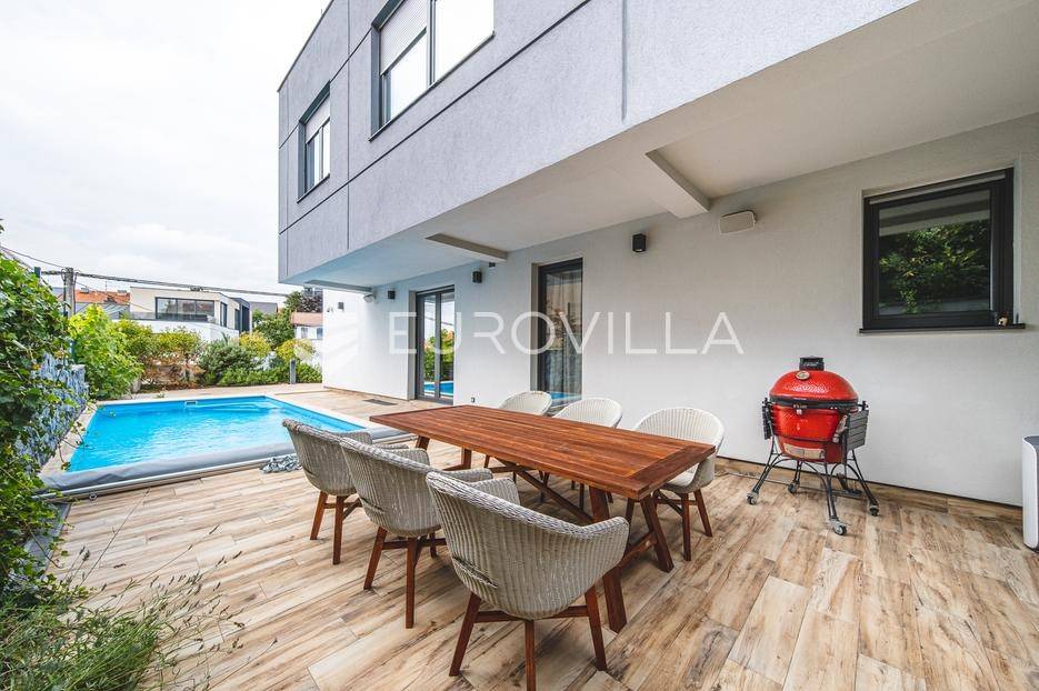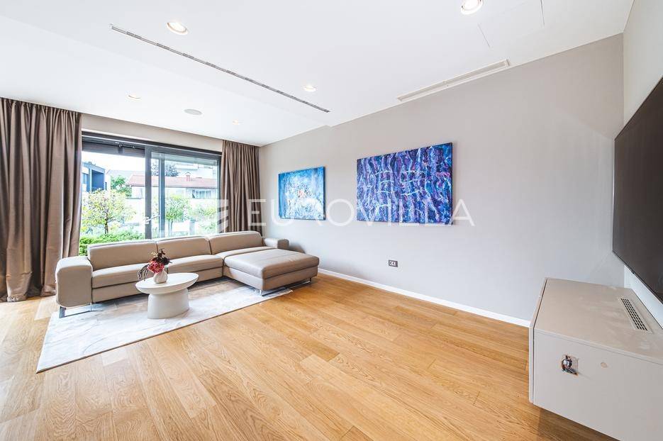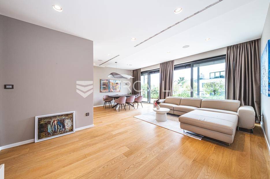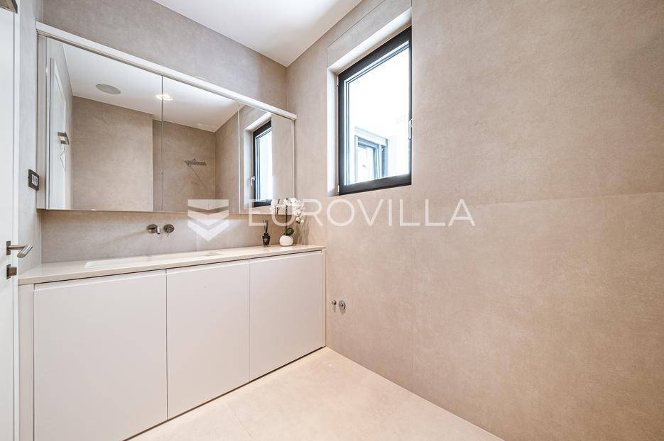 U rezidencijalnom dijelu Šalate, u modernoj vili s ukupno tri stana, iznajmljuje se prekrasan četverosoban stan smješten na prvom katu.Stan zatvorene površine 127 m² sastoji se od ulaznog hodnika, garderobe, prostranog dnevnog boravka s kuhinjom i blagovaonicom, master spavaće sobe sa kupaonicom i garderobom, 2 spavaće sobe te kupaonice.Na raspolaganju su prostrana terasa od 90 m², privatni vrt s bazenom površine 20 m², dva garažna parkirna mjesta te spremište i vešeraj. Ukupna obračunska površina iznosi 190 m².Stan je luksuzno namješten i opremljen vrhunskim materijalima, a svojim sadržajem i uređenjem pruža savršenu udobnost za obiteljski život.... Više na eurovilla.hr, ID: 324795