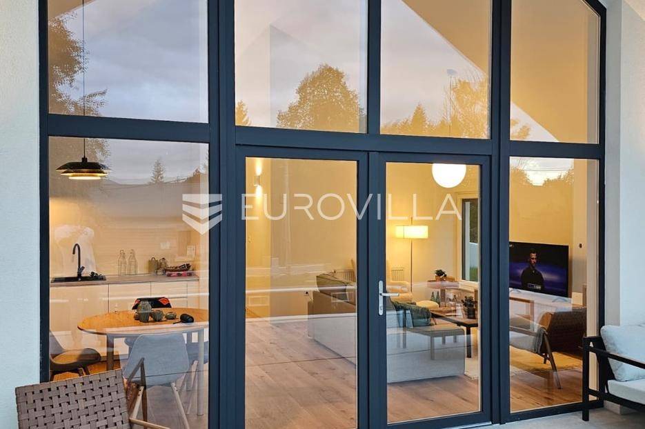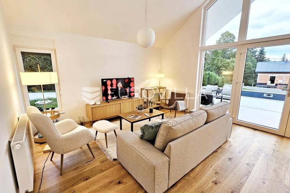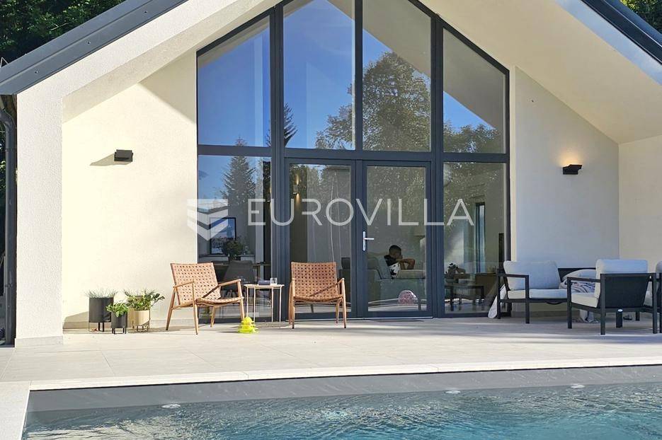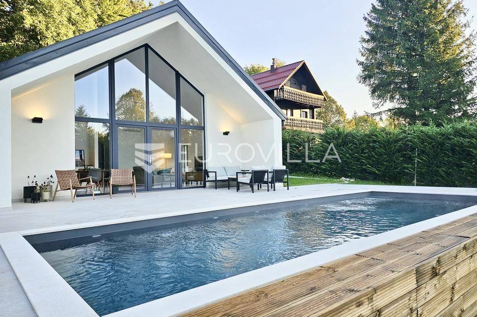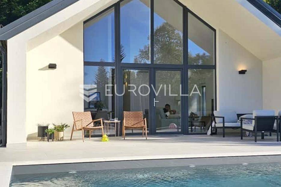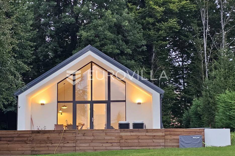 Gorski kotar, Kupjak, prekrasna novoizgrađena samostojeća kuća površine 115 m2, na parceli površine 1600 m2, smještena 200 m od sanjkališta Gorski sjaj.Nalazi se neposredno uz staru cestu Rijeka - Zagreb, svega 3 min vožnje od autoceste.Sastoji se prostranog dnevnog boravka visine stropa 5,5 m2, kuhinje i blagovaonice, tri spavaće sobe, dvije kupaonice, ostave, vanjske popločene terase površine 110 m2 te grijanog vanjskog bazena dimenzija 8,5 m x 3 m.Kompletno novo i moderno namještena, projektirana od strane renomiranog arhitektonskog biroa iz Zagreba,, kuhinja opremljena sa svim aparatima (perilica suđa, pećnica, frižider), pvc stolarija s dvoslojnim staklima, komarnici, rolete, etažno grijanje na struju, klimatizirana, betonska gradnja uključujući i krov na koji su postavljeni sendvič paneli debljine 15 cm.Izvrsna lokacija u miru i tišini Gorskog kotara, idealna za opuštanje, seoski turizam, OPG i slične namjene.za sve potrebne informacije stojimo na raspolaganju.... Više na eurovilla.hr, ID: 346056