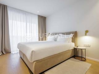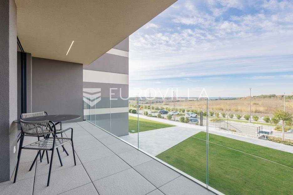 Istra, Petram resort, jednsoban apartman 64 m2 s pogledom na more na 1. katu apart hotela s pogledom na more i parkirnim mjestom.Stan se sastoji od ulaznog hodnika, jedne spavaće sobe, kupaonice, prostranog dnevnog boravka s blagovaonicom i kuhinjom te prostrane terase s pogledom na more.Navedena cijena uključuje apartman, namještaj te parking. Visoki standardi gradnje i pažljivo planiran koncept kompleksa osiguravaju maksimalnu privatnost, mir i udobnost.Vlasnicima su na raspolaganju sve pogodnosti luksuznog resorta: sportski tereni, bazeni, teretana, uređena plaža, dječji kutak i igralište, razne trgovine, SPA & wellness centar, usluge concierga, recepcija i slično.Apartman je opremljen luksuznim paketom opreme, što mu daje poseban karakter i ostavlja izniman dojam već pri prvom ulasku.Unutar resorta dostupna je i opcija „rent a pool“, uz unaprijed definirane godišnje uvjete.Ovaj moderan apartman smješten je tik do mora, unutar luksuznog rezidencijalnog kompleksa osmišljenog za potpunu relaksaciju i odmor.Petram Resort se nalazi u neposrednoj blizini golf terena, zračne luke Pula i Trst udaljene su 90 km dok se na 18 km nalazi sportska zračna luka Portorož.Za sve dodatne informacije stojimo Vam na raspolaganju.... Više na eurovilla.hr, ID: 355861