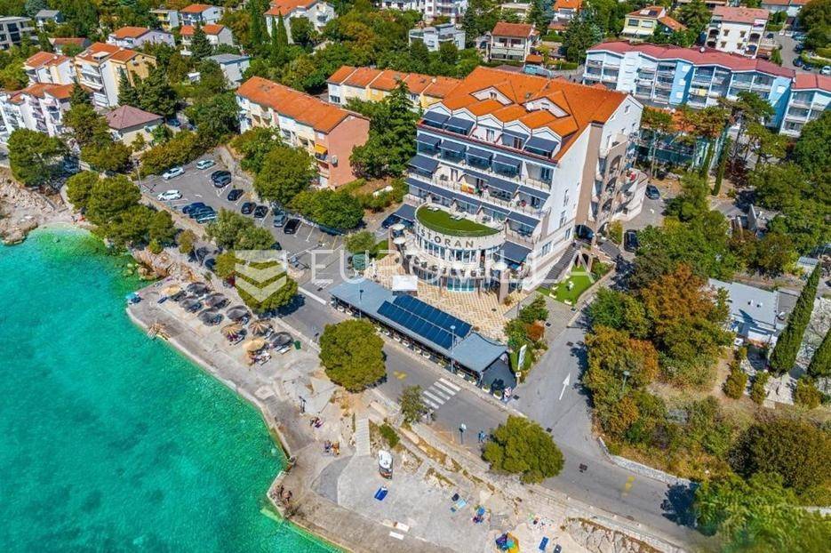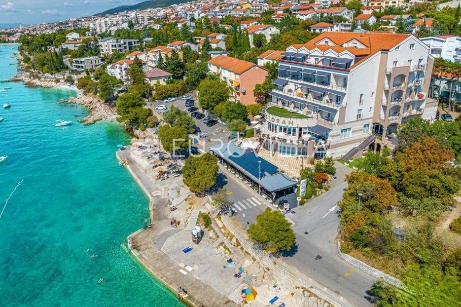 Prodaje se vrlo dobro uhodani hotel prvi red do mora. Izgrađen je 2003. godine i u cijelosti adaptiran 2014. godine. Privlači goste svojim uređenjem, lokacijom i atraktivnim pogledom na more. Hotel ambijentom i gastronomskom ponudom domaće, internacionalne i mediteranske kuhinje privlači baš sve. Nalazi se prvi red do mora na poznatoj "Šetnici zdravlja" koja povezuje dva turistička mjesta, Crikvenicu i Selce i jedini radi 365 dana u godini, od 0-24 h.Predvorje hotela se odlikuje širinom prostora u kojem se nalaze recepcija, prostor za odmor i opuštanje, aperitiv-bar te dizalo koje vodi u luksuzno uređene sobe.- Hotel ima 60 pametnih soba (Siemens tehnologija), većina s balkonom i s tri strane pogledom na more;- Hotel se nalazi uz kristalno tirkizno more;- Restoran s terasom sa 150 sjedećih mjesta;- Taverna - konoba izgrađena je 2015. s 200 sjedećih mjesta;- Aperitiv bar sa 60 sjedećih mjesta;- Caffe bar uz more i „Šetnicu zdravlja“ sa 150 sjedećih mjesta;- Vlastita praonica i peglaonica rublja;- Asfaltirano vlastito parkiralište s 50 parking mjesta;- Unutarnji bazen sa slatkom ili slanom vodom po izboru - (masažni stup, protustrujno plivanje, gejzer - fontana);- Sauna plus masažni studio;- Fitnes s najnovijim spravama;- Konferencijska dvorana sa 100 sjedećih mjesta;- Besplatan wi -fi u cijelom hotelu + internet kutak u predvorju hotela;- Koncesija na vlastitu plažu u dužini od 100 m;Hotel je kategoriziran s 4* bez hipoteka i tereta, vlasništvo 1/1, što je rijetkost na našoj obali.Hotel je udaljen 45 km od zračne luke Rijeka, 12 km od auto-ceste i izvrsno je prometno povezan.Ukupna površina hotela je 5.369 m2.Zemljište + parkiralište - 3.957 m2.Hotel posluje 365 dana u godini.Za sva dodatna pitanja, potrebne informacije ili želju za organizacijom termina razgleda nekretnine slobodno nas kontaktirajte!... Više na eurovilla.hr, ID: 359704