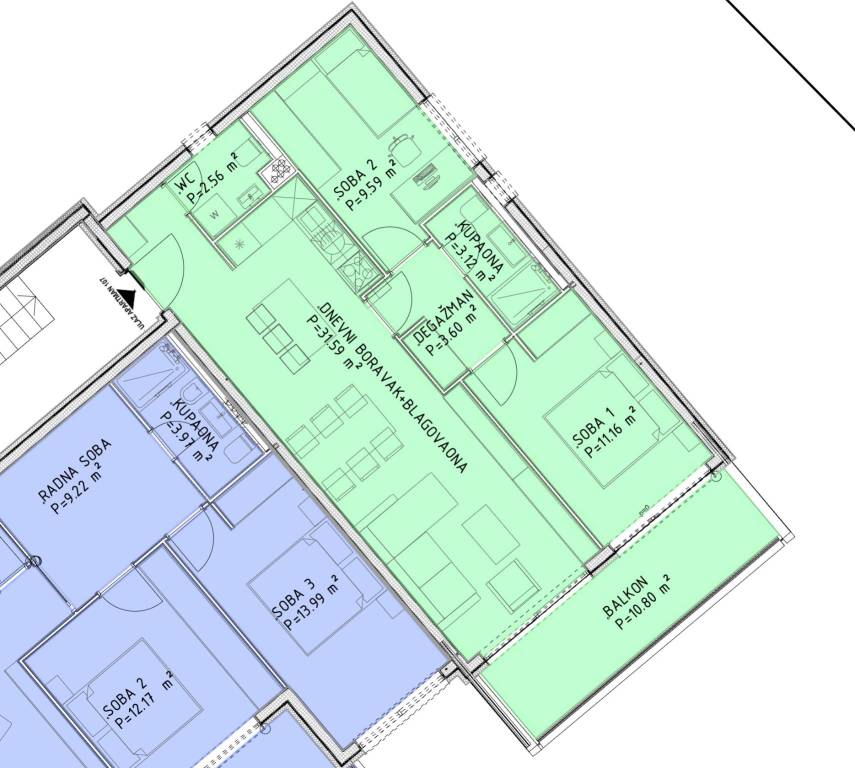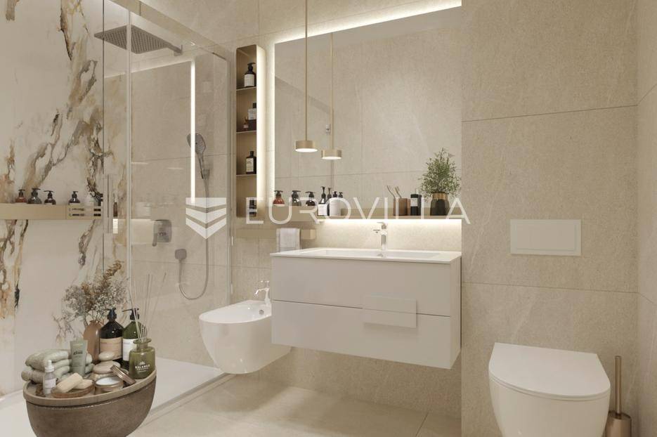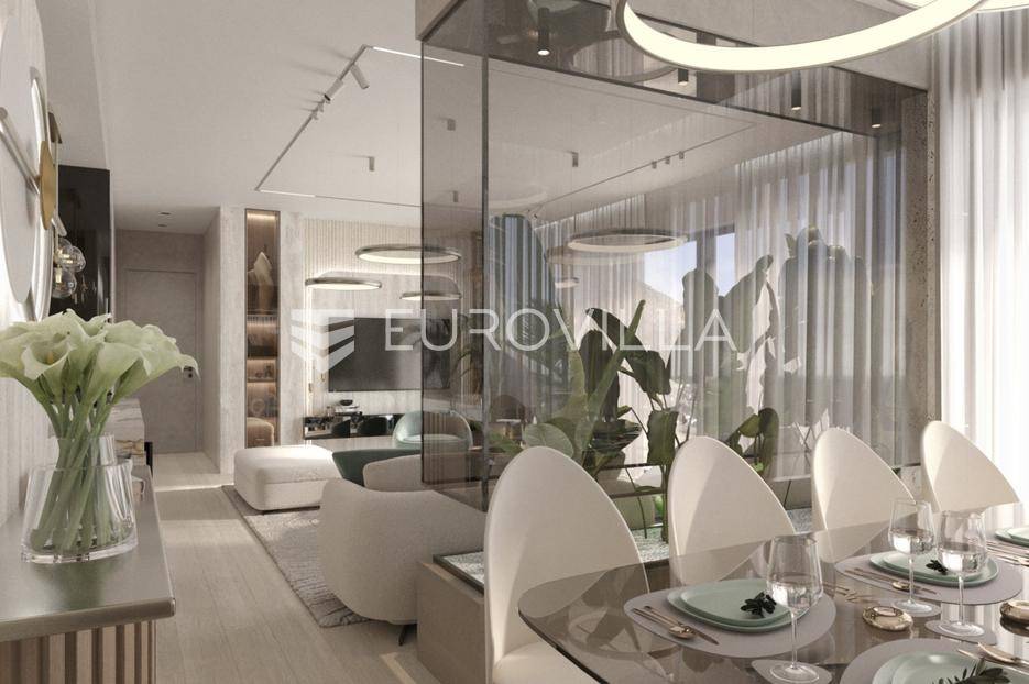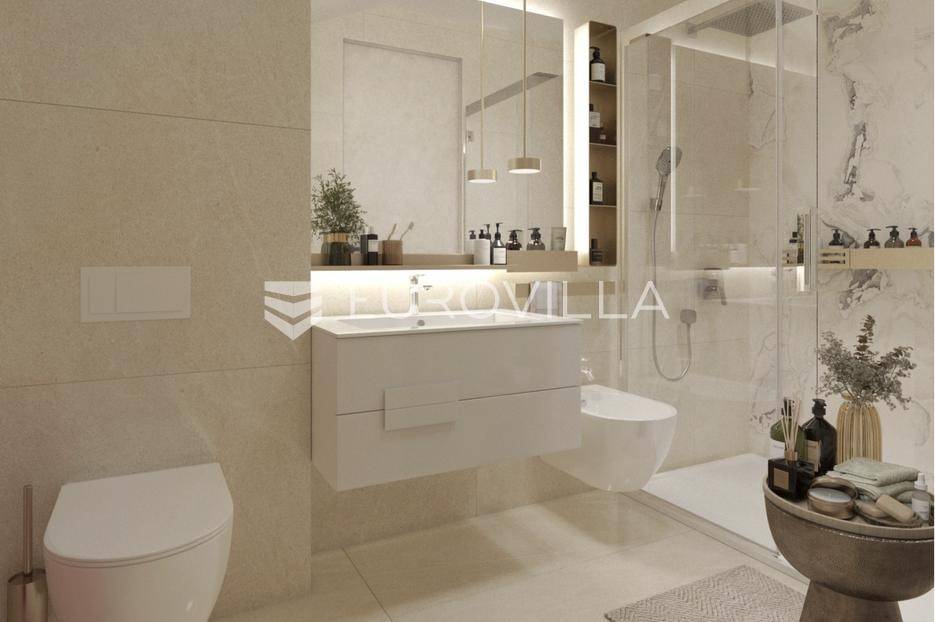 Opatija, Centar, Luksuzan stan 78 m², NOVOGRADNJA.Na prodaju je moderan i luksuzno uređen stan smješten u vrhunskoj novogradnji u samom centru Opatije. Zgrada se nalazi na povišenoj i mirnoj lokaciji s koje se pruža pogled na more, dok su plaže, šetnice, restorani i trgovine udaljeni svega nekoliko minuta hoda.Stan ukupne obračunske površine 78,44 m² sastoji se od prostranog dnevnog boravka s kuhinjom i blagovaonicom (31,59 m²), dvije spavaće sobe (11,16 m² i 9,59 m²), kupaonice, dodatnog WC-a, degažmana te balkona površine 10,80 m² (obračunski 5,40 m²). Uz stan dolazi i garažno parkirno mjesto površine 14,80 m² (obračunski 7,40 m²), te dvije ostave u garaži, površine 2,81 m² (obračunski 1,41 m²) i 5,22 m² (obračunski 2,61 m²).Stan je opremljen prema najvišim standardima - uključuje Schüco aluminijsku stolariju, podno grijanje, multi-split klima sustav, te vrhunsku keramiku i sanitarije renomiranih proizvođača. Prostrani balkon i velike staklene stijene omogućuju obilje prirodne svjetlosti i dodatno naglašavaju eleganciju prostora.Ova nekretnina idealna je za cjelogodišnje stanovanje, odmor ili kao sigurna investicija. Blizina svih sadržaja i iznimna kvaliteta gradnje čine ju rijetkom prilikom na opatijskom tržištu.Za više informacija i dogovor oko razgledavanja, slobodno nas kontaktirajte... Više na eurovilla.hr, ID: 362449