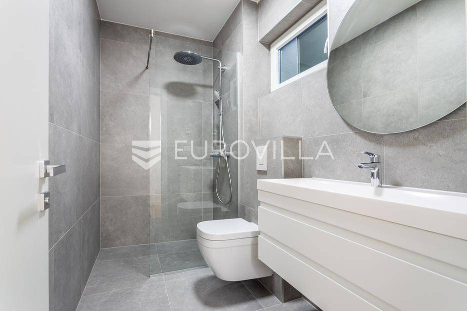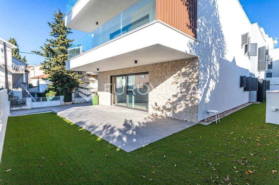 Na iznimnoj lokaciji u centru Vodica, svega 200 metara od mora, nalazi se ovaj prostrani apartman u prizemlju novogradnje visoke kvalitete, neto korisne površine 148,24 m². Nekretnini pripadaju dva privatna parkirna mjesta te prostrano dvorište površine 99,58 m², što predstavlja rijetkost u ovom dijelu mjesta. Ukupna zatvorena površina stana iznosi 111,30 m².Stan je funkcionalno i moderno osmišljen, a sastoji se od prostranog dnevnog boravka s kuhinjom i blagovaonicom, četiri spavaće sobe (od kojih jedna ima vlastitu kupaonicu i walk in garderobu), dodatne kupaonice te zasebnog toaleta. Iz dnevnog boravka izlazi se na veliku terasu površine 25,16 m², koja je povezana s ostatkom dvorišta i čini savršen prostor za boravak na otvorenom.Veliko privatno dvorište pruža brojne mogućnosti uređenja - od zone za roštilj i druženje, do prostora za dječje igralište ili dodatni vrt, čime se dodatno naglašava ekskluzivnost ove nekretnine.Zgrada je građena prema najvišim standardima gradnje i opreme. Izdvajamo:dizalopodno grijanje na toplinsku pumpuMitsubishi klima uređaje u svim prostorijamavrhunsku stolariju s troslojnim staklomvideo parlafonpripremu za punionicu električnih vozila na parkirnom mjestupametnu parking rampu s očitavanjem registarskih oznakaLokacija zgrade dodatno povećava vrijednost nekretnine - mirna, a istovremeno centralna pozicija, na nekoliko minuta hoda od mora, plaže i svih sadržaja, čini ovu novogradnju jednom od rijetkih i najpoželjnijih u ovom dijelu Vodica.Za sve dodatne informacije i razgledavanje, slobodno nas kontaktirajte.... Više na eurovilla.hr, ID: 363430