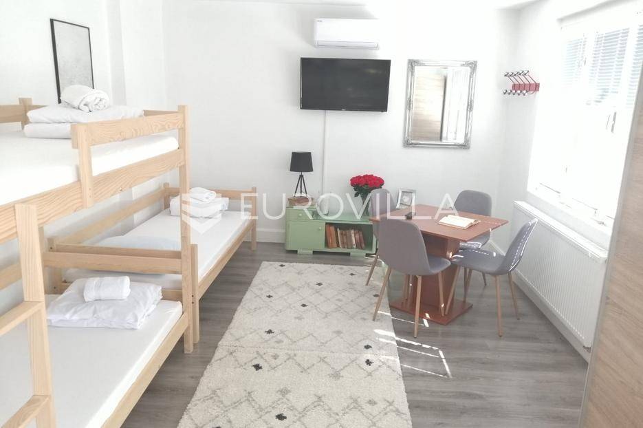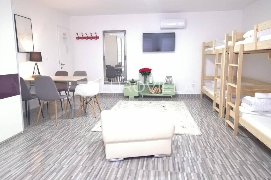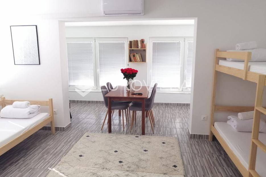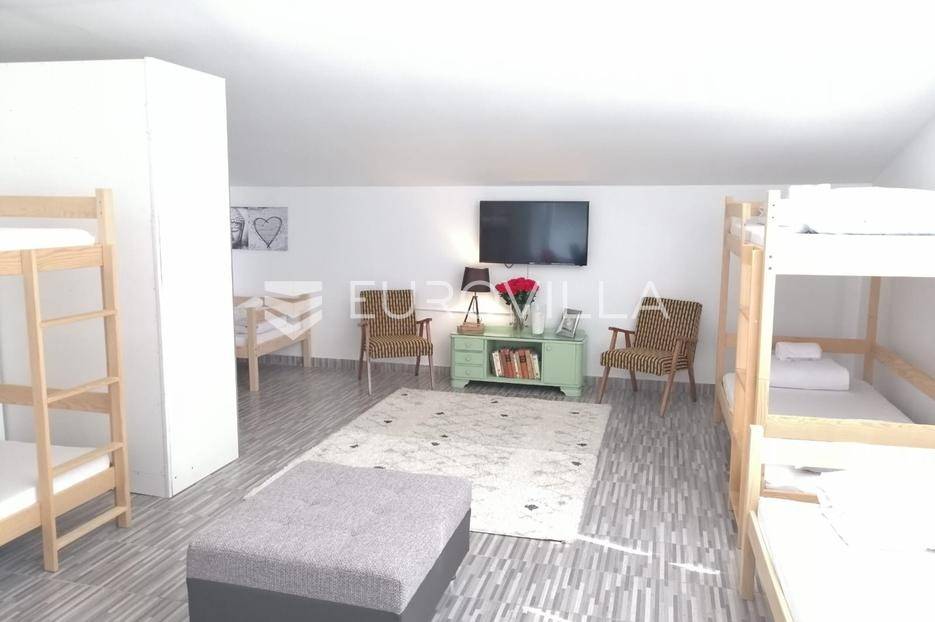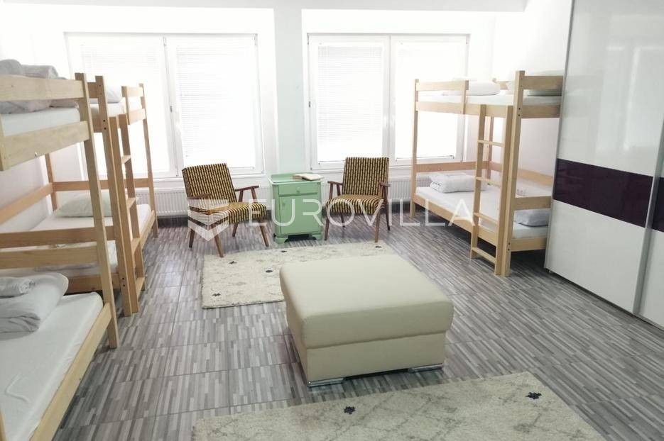Karlovac, hostel 500 m2 na mirnoj lokaciji u blizini centra.Nalazi se na ograđenoj parceli od 917 m2 s 440 m2 asfaltirane okućnice za parking. Uhodan posao, trenutačno u funkciji. Prodaje se kompletno namješten.Sastoji se od 8 spavaćih soba, kuhinje, blagovaonice, 5 kupaonica, 6 WC-ova, kotlovnice, 3 balkona, recepcije, ostave i hodnika.Smještajni kapacitet za 40 osoba. Centralno grijanje na palete, PVC stolarija, podne obloge keramika i laminat, krovni pokrov lim, fasada 10 cm stiropora.Karlovac je grad u središnjoj Hrvatskoj, poznat po svojoj posebnoj zvjezdastoj povijesnoj jezgri i po tome što leži na četiri rijeke: Kupi, Korani, Mrežnici i Dobri. Smješten je na važnom prometnom položaju između Zagreba i mora, pa je kroz povijest bio značajno trgovačko i vojno središte. Danas je Karlovac miran, zelen i ugodan grad za život i posjet.Za sva ostala pitanja stojim na raspolaganju.... Više na eurovilla.hr, ID: 366149
