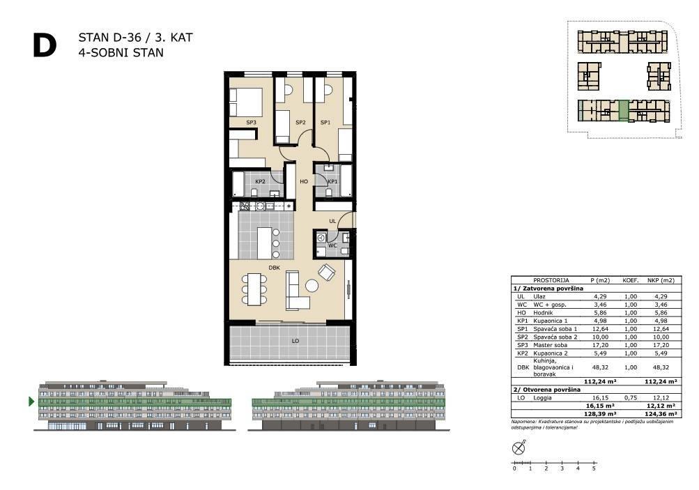 Četverosoban stan na 3. katu stambene zgrade zatvorene površine 112,24 m2 s loggiom 16,15 m2 (12,12) , ukupne neto površine 124,36 m2.Stan D-27 sastoji se od ulaznog hodnika, kuhinje s blagovaonicom i dnevnim boravkom, predsoblja, tri spavaće sobe, dvije kupaonice, loggie i gospodarstva.Obvezna kupnja spremišta, vanjskog ili garažnog parkirnog mjesta.Stan se nalazi u višestambenoj zgradi unutar kompleksa koji će se sastojati od 165 stambenih jedinica.Green Side Residence nalazi se u Velikoj Gorici, samo 10 kilometara od Zagreba i tek 3 kilometra od Međunarodne zračne luke Zagreb, lokacija nudi izvrsnu prometnu povezanost s glavnim gradom i cijelom Hrvatskom, zahvaljujući neposrednom pristupu dvjema autocestama.Okružen zelenilom, a opet u blizini svih gradskih sadržaja, ovaj projekt predstavlja idealan izbor za miran, ali povezan život.Useljenje 11/2027. godine.Za sve ostale informacije stojimo na raspolaganju.... Više na eurovilla.hr, ID: 393379