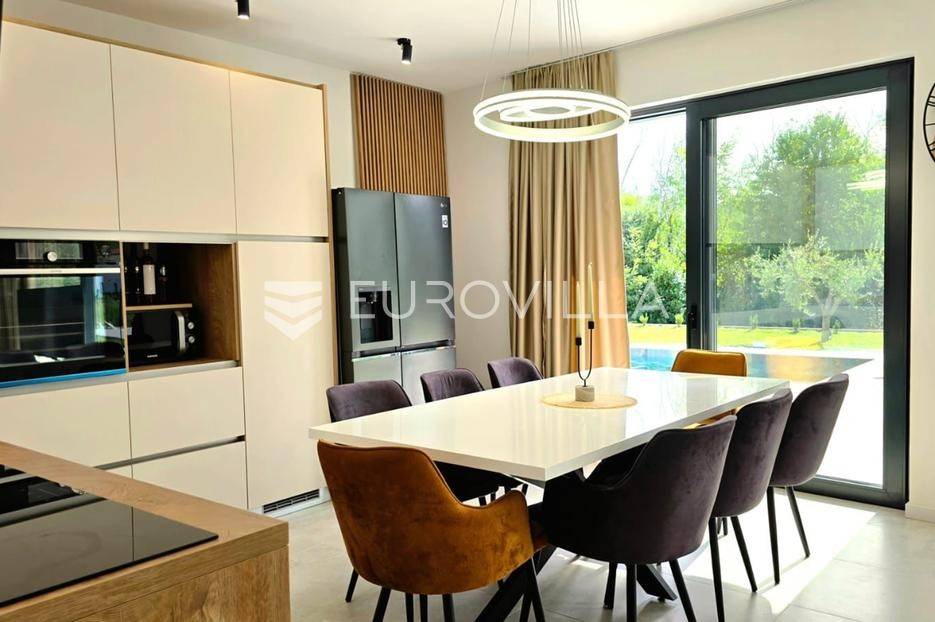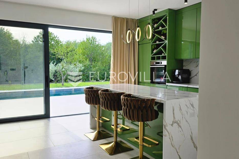 U malom mjestu kraj Labina ( Nedešćina ), na mirnoj lokaciji okruženoj zelenilom smjestio se kompleks od tri ville u nizu. Navedena koju prodajemo površine je 203 m2 ( neto 176.15 m2 ). Sastoji se od dvije stambene jedinice - veću stambenu jedinicu od 130 m2 s tri spavaće sobe, dvije kupaonice, dnevnog boravka kuhinje i blagovaone, spremišta te manju stambenu jedinicu od 60m2 s dvije spavaće sobe, kupaonice, dnevnog boravka kuhinje i blagovaone, spremišta. Villa ima i prostranu zajedničku natkrivenu terasu od 32.30 m2 te prekrasan bazen okružen udobnim ležaljkama i terasom za sunčanje, što je idealno mjesto za opuštanje.Prilikom izgradnje koristili su se veoma kvalitetni materijali. Prednju stolariju čine aluminijske podizno klizne stijene te alu ulazna vrata vrhunske izvedbe marke CORTIZO, a na sobama u kupatilima je PVC Kömmerling s trostrukim staklima. Objekti su energetske klase A+.Hlađenje i grijanje riješeno je putem inverterskih klima uređaja u svakoj prostoriji. Objekti imaju podno grijanje putem toplinske pumpe. Kompletni podovi su u keramici.Navedena villa se prodaje u namještenom stanju.Uz ovu moguća je kupovine još dvije ville po sličnom principu, jedna ima i vlastitu vinoteku. Sve tri ville su izgrađene s luksuznim materijalima i detaljima, a interijeri su elegantni i moderni. Vanjski prostor nudi privatnost i mir, ograđen je i ima posebnu parcelu kao prilaz koja će se staviti pod rampu, tako da će isključivo vlasnici mogući pristupiti. Svakoj kući pripada veliki bazen s terasom za sunčanje i roštiljem, savršenim za opuštanje i zabavu s obitelji i prijateljima kao i zajedničko dječje igralište.Za informacije i dogovore oko razgledavanja Vam stojimo na raspolaganju.... Više na eurovilla.hr, ID: 400320