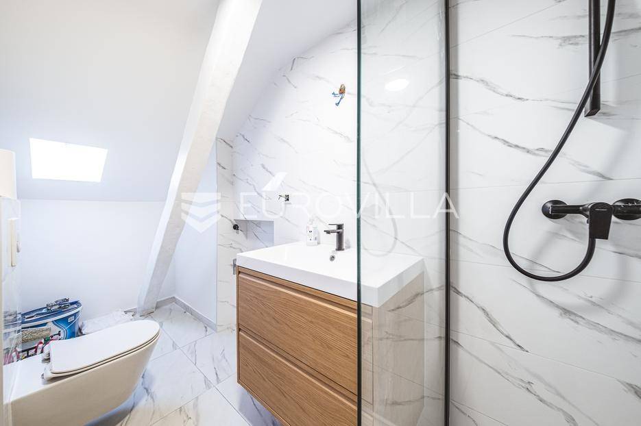 Zagreb, Centar, odličan renoviran trosoban stan na trećem katu uredno održavane zgrade.Sastoji se od dvije etaže ukupne neto korisne površine 56 m2. Na prvoj etaži nalaze se ulazni hodnik, dnevni boravak, kuhinjski i blagovaonski dio, kupaonica te spavaća/radna soba. Na drugoj etaži smještena je dodatna spavaća/radna soba.Stan ima panoramski pogled na grad.U potpunosti renoviran 2025. godine. Ugrađene su nove instalacije (voda i struja), postavljeni novi podovi, obnovljene grede i stolarija.Nalazi se na iznimno frekventnoj i atraktivnoj lokaciji, u samom centru grada, u neposrednoj blizini javnog prijevoza, restorana, kafića, trgovina te svih ostalih sadržaja potrebnih za kvalitetan život.Za sve dodatne informacije stojimo Vam na raspolaganju.... Više na eurovilla.hr, ID: 404811