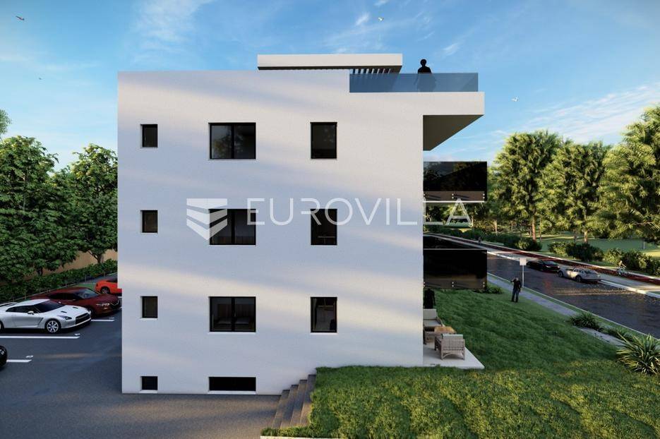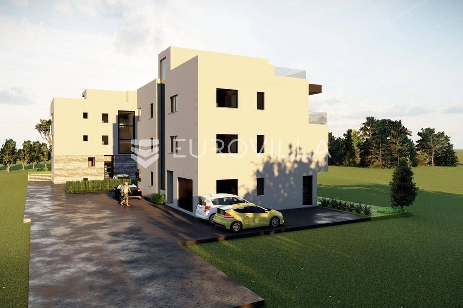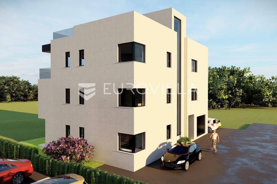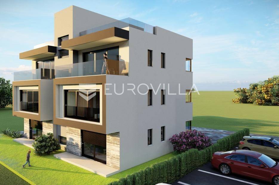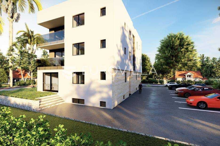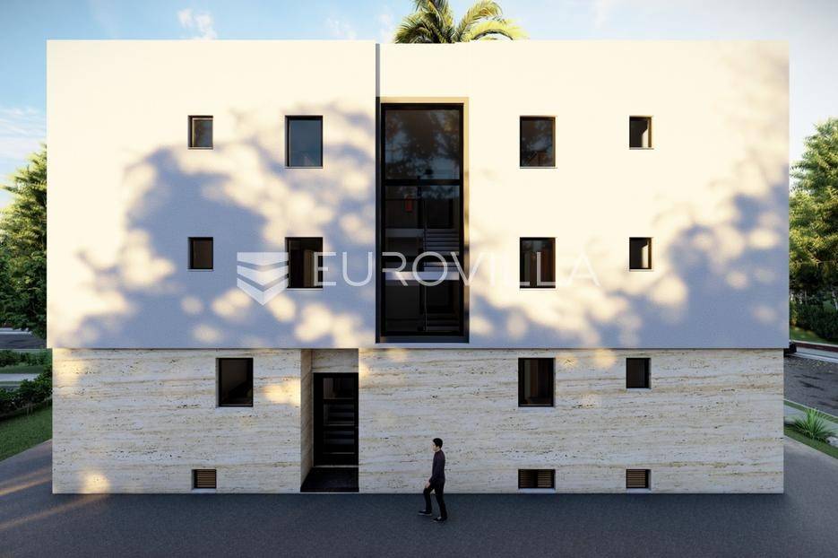 U mirnom dijelu Sukošana smješten je dvosoban stan na drugom katu moderne stambene zgrade, s pripadajućom krovnom terasom i dva parkirna mjesta .Stan se sastoji od hodnika, dvije spavaće sobe, dvije kupaonice, kuhinje, dnevnog boravka i balkona. Raspored prostora je funkcionalan i prilagođen cjelogodišnjem stanovanju, uz dobar omjer unutarnjih i vanjskih površina.Površine prema etažnom elaboratu:stambeni prostor s balkonom: 75,10 m²(korisna vrijednost 68,95 m²)krovna terasa: 78,70 m²(korisna vrijednost 26,43 m²)spremište: 6,90 m²(korisna vrijednost 3,45 m²)dva parkirna mjesta ukupne površine 27,50 m²(korisna vrijednost 5,50 m²)Ukupna neto korisna vrijednost: cca 104,33 m²Stan se nalazi u manjoj stambenoj zgradi suvremenog arhitektonskog dizajna. Zgrada je opremljena liftom koji povezuje sve etaže.Velike staklene stijene osiguravaju obilje prirodnog svjetla i osjećaj prozračnosti prostora.More i plaža udaljeni su cca 250 m.Nekretnina se ističe kvalitetnom gradnjom, privatnošću te prostranom krovnom terasom koja dodatno podiže razinu stanovanja.Za dodatno više informacija i dogovor o razgledavanju stojimo na raspolaganju.... Više na eurovilla.hr, ID: 431533