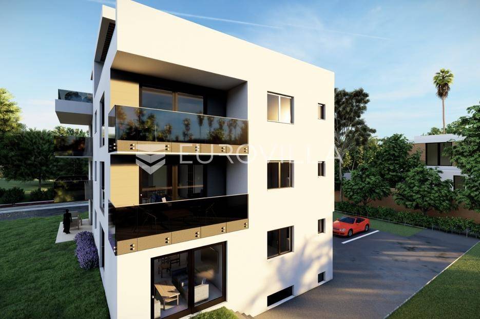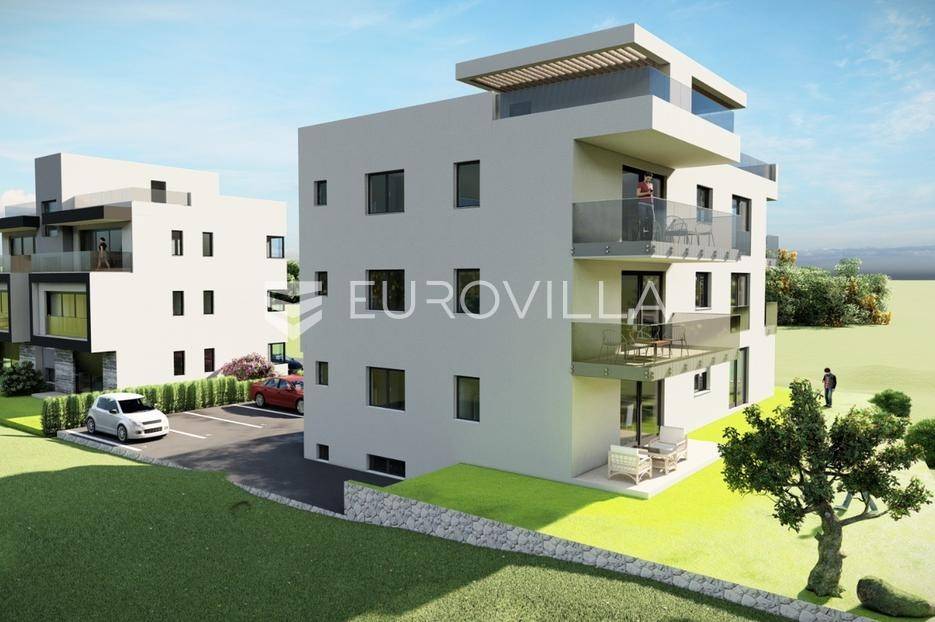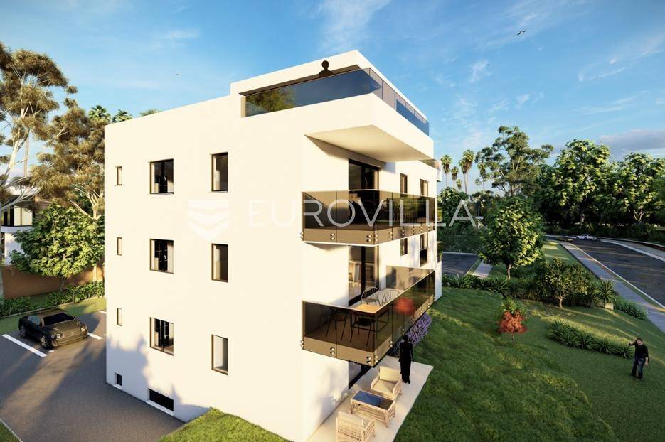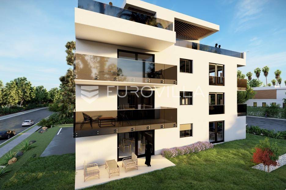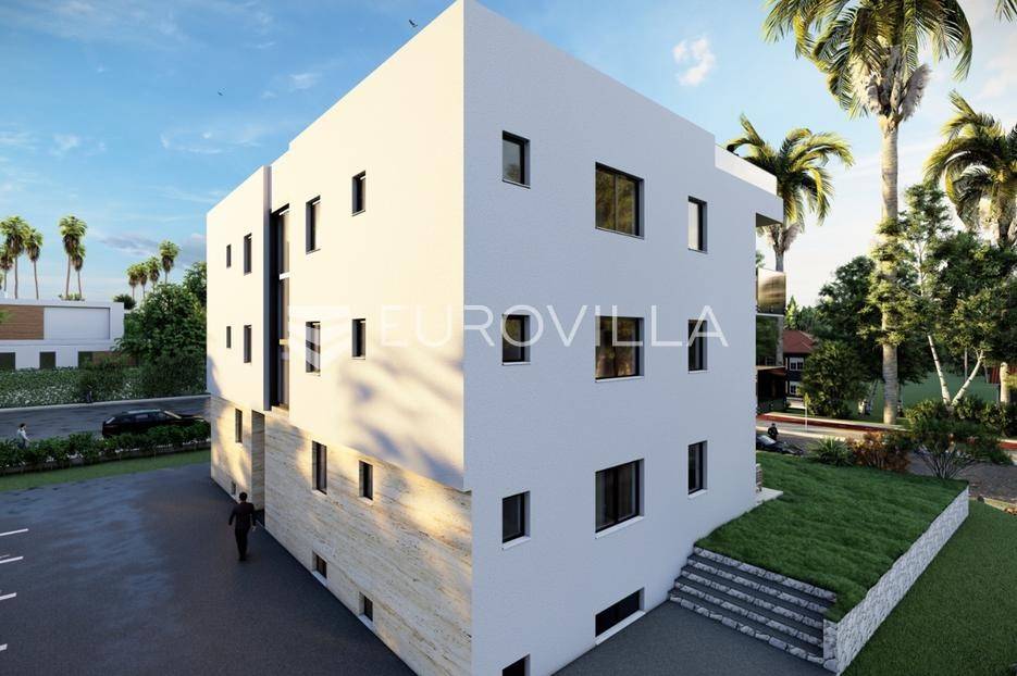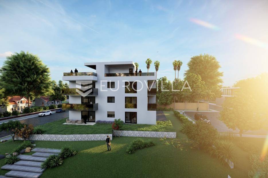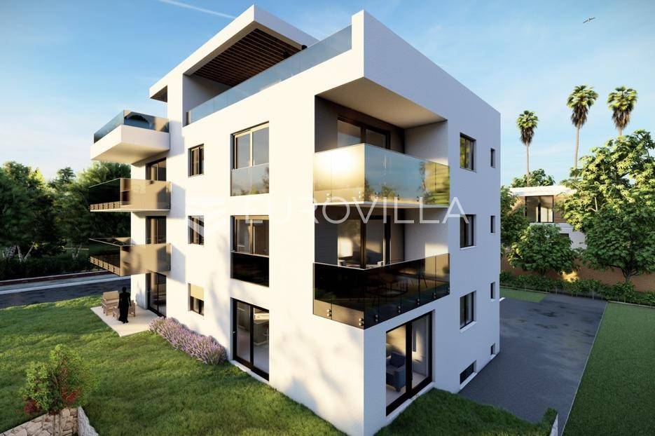 U mirnom dijelu Sukošana smješten je dvosoban stan na drugom katu moderne stambene zgrade, s pripadajućom krovnom terasom i dva parkirna mjesta .Stan se sastoji od hodnika, dvije spavaće sobe, dvije kupaonice, kuhinje, dnevnog boravka i balkona. Raspored prostora je funkcionalan i prilagođen cjelogodišnjem stanovanju, uz dobar omjer unutarnjih i vanjskih površina.Površine prema etažnom elaboratu:stambeni prostor s balkonom: 75,10 m²(korisna vrijednost 68,95 m²)krovna terasa: 78,70 m²(korisna vrijednost 26,43 m²)spremište: 6,90 m²(korisna vrijednost 3,45 m²)dva parkirna mjesta ukupne površine 27,50 m²(korisna vrijednost 5,50 m²)Ukupna neto korisna vrijednost: cca 104,33 m²Stan se nalazi u manjoj stambenoj zgradi suvremenog arhitektonskog dizajna. Zgrada je opremljena liftom koji povezuje sve etaže.Velike staklene stijene osiguravaju obilje prirodnog svjetla i osjećaj prozračnosti prostora.More i plaža udaljeni su cca 250 m.Nekretnina se ističe kvalitetnom gradnjom, privatnošću te prostranom krovnom terasom koja dodatno podiže razinu stanovanja.Za dodatno više informacija i dogovor o razgledavanju stojimo na raspolaganju.... Više na eurovilla.hr, ID: 431533