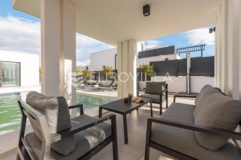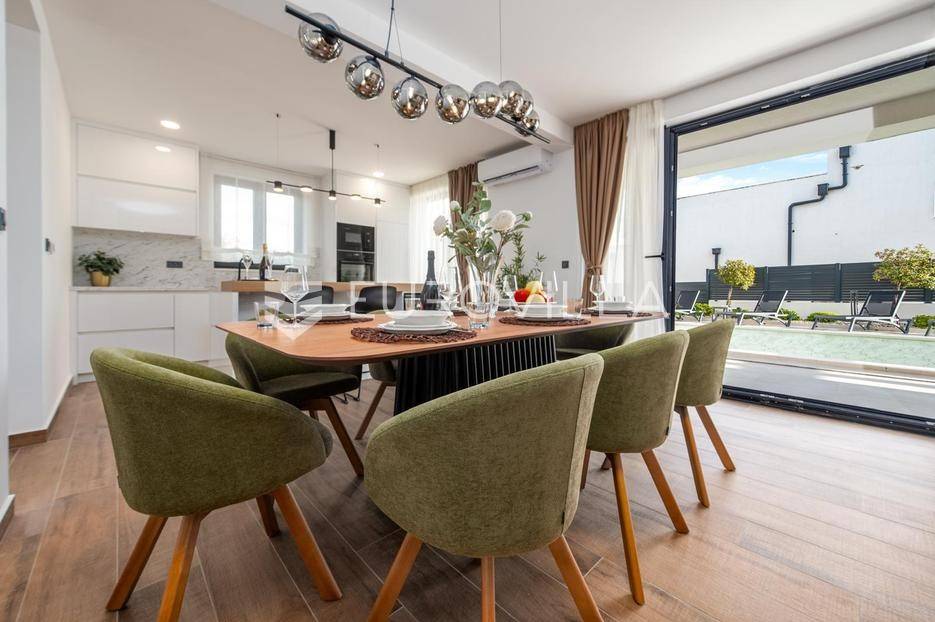 Zadar, Pridraga, ova luksuzna vila smještena u mirnom naselju, predstavlja savršen spoj elegancije, udobnosti i vrhunske lokacije. Sa svojom površinom od 169.29 m2, ova nekretnina nudi prostran i funkcionalan raspored idealan za obiteljski život. Smještena u slikovitom okruženju Zadarske županije, vila pruža ne samo mir i privatnost, već i jednostavan pristup svim potrebnim sadržajima i predivnim plažama.U prizemlju vile nalazi se prostrani dnevni boravak i moderno opremljena kuhinja, stvarajući otvoreni prostor savršen za druženje i opuštanje. Dodatna kupaonica i praktična gospodarska soba povećavaju funkcionalnost ovog kata. Iz dnevnog boravka i kuhinje izlazi se direktno na prekrasan vanjski bazen i prostrani vrt, pružajući savršeno mjesto za opuštanje tijekom toplih ljetnih mjeseci. Vrt je uređen s pažnjom, stvarajući oazu mira i ljepote, idealnu za obiteljska okupljanja i uživanje u prirodi.Poseban dodatak ovoj nekretnini je konoba smještena u vrtu, opremljena kuhinjom i WC-om, pružajući idealan prostor za druženja i zabave s prijateljima i obitelji. Na katu se nalaze tri prostrane spavaće sobe, svaka dizajnirana s naglaskom na udobnost i stil. Glavna spavaća soba ima vlastitu terasu s koje se pruža prekrasan pogled na okolicu i more. Dodatna kupaonica na katu osigurava privatnost i komfor za sve ukućane.Vila je energetski učinkovita, što osigurava niske režijske troškove i ugodan boravak tijekom cijele godine. Balkon i terasa pružaju dodatni prostor za opuštanje i uživanje u prekrasnom pogledu na zalazak sunca, koji je ovdje posebno očaravajuć. Uređen vrt, bazen i konoba pružaju dodatne mogućnosti za zabavu i rekreaciju, čineći ovu vilu savršenim domom za obitelj koja traži luksuz i udobnost u mirnom okruženju.Ne propustite priliku postati vlasnikom ove iznimne nekretnine. Za sva dodatna pitanja i dogovor oko razgledavanja, slobodno nas kontaktirajte.... Više na eurovilla.hr, ID: 442396