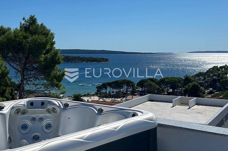 Predivan penthouse s krovnom terasom, jacuzzijem i 360° pogledom smješten je u modernoj urbanoj vili na mirnoj lokaciji u Banjolu, samo 250 metara od plaže. Nalazi se na drugom katu zgrade pozicionirane na blagom brežuljku, što omogućuje nesmetane panoramske poglede i posebnu dozu privatnosti. Ovaj luksuzan stan predstavlja savršenu kombinaciju elegancije, komfora i prestižne pozicije, idealan za život tijekom cijele godine ili kao ekskluzivna ljetna rezidencija.Penthouse obuhvaća 130 m² prostranog i funkcionalno dizajniranog interijera. Sastoji se od velikog dnevnog boravka povezanog s kuhinjom i blagovaonicom, triju udobnih spavaćih soba, dviju modernih kupaonica te predsoblja. Iz dnevnog boravka izlazi se na veliku L-terasu koja pruža prekrasan pogled i predstavlja idealno mjesto za svakodnevni boravak.Posebna vrijednost ove nekretnine je privatna krovna terasa površine 145 m², koja je zamišljena kao prava privatna oaza s jacuzzijem za šest osoba, natkrivenim dijelom za blagovanje, vanjskom kuhinjom s roštiljem, tušem, prostorom za sunčanje i udobnim kutkom za odmor. Pogled koji se proteže prema Barbatskom kanalu i otocima Lošinj, Pag i Cres te prema gradu Rabu ostavlja dojam beskrajnog horizonta.Nekretnina uključuje dva privatna parkirna mjesta, što dodatno povećava praktičnost i komfor. Lokacija nudi savršenu ravnotežu mira i blizine sadržaja. Plaža je udaljena svega nekoliko minuta hoda, a u neposrednoj blizini nalaze se trgovine, restorani, kafići, šetnice i drugi sadržaji. Do centra Raba može se doći laganom šetnjom uz more za dvadesetak minuta ili automobilom i taxi brodom za svega nekoliko minuta. Urbana vila smještena je na samom kraju ulice bez prometa, što osigurava intimnost i tišinu tijekom cijele godine.Ovaj penthouse predstavlja rijetku priliku na tržištu, ekskluzivnu nekretninu koja nudi izniman komfor, luksuz i nezamjenjive poglede u jednom od najpoželjnijih dijelova otoka Raba.... Više na eurovilla.hr, ID: 448970