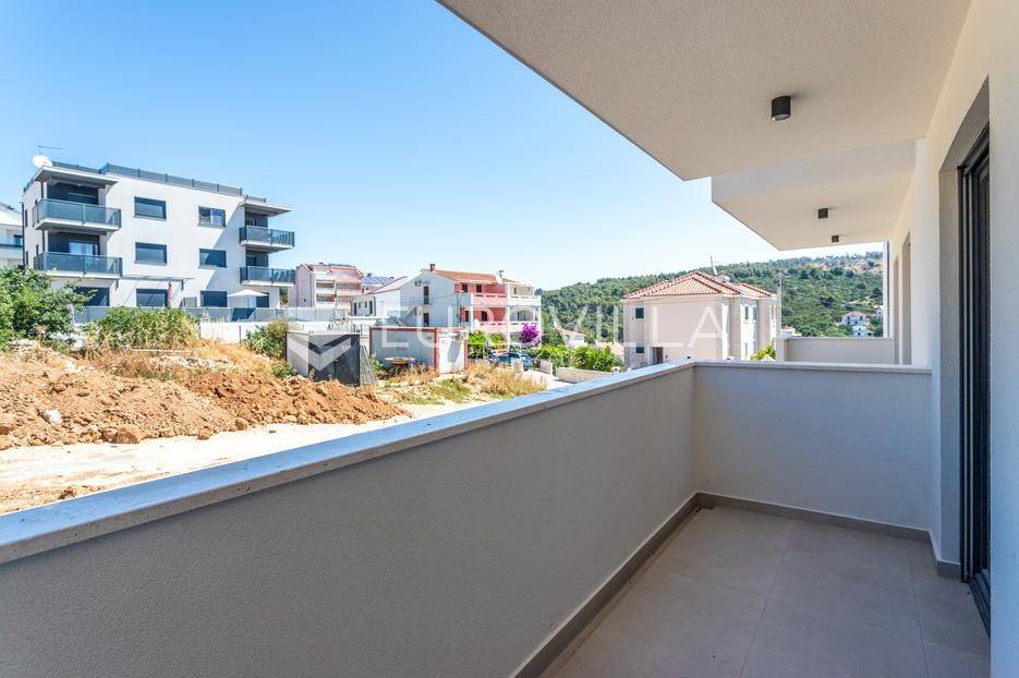 Okrug Gornji - južna strana otoka Čiova, moderna zgrada sa 17 stanova 150 metara od mora južne orijentacije s pogledom na more.Mikrolokacija nekretnine je odlična - nalazi se odmah uz dvosmjernu cestu par minuta od novog mosta i samo desetak minuta vožnje od splitskog aerodroma.Zgrada se proteže na pet etaža s dva vanjska ulaza i dva lifta koji povezuju katove od podruma gdje su smještene garaže i spremišta. Na svakoj etaži nalazi se po pet stanova i posljednji kat je rezerviran za dva prostrana penthousea s panoramskim pogledom.STAN S10- nalazi se u prizemlju zgrade. Sastoji se od hodnika, otvorenog koncepta kuhinje, blagovaonice i dnevnog boravka (30,35 m2), dvije kupaonice, dvije spavaće sobe, praonice i spremišta - ukupne zatvorene površine 73,89 m2. U vanjskom dijelu pripada balkon s južne strane ukupne površine 9,15 m2.U opremanju stanova koristit će se samo najkvalitetniji materijali - pločice i sanitarije visoke klase, zatvori na električno podizanje roleta, klima uređaj u svakoj prostoriji, podno grijanje u kupaonicama i dnevnom prostoru.U cijenu je uključeno jedno garažno parkirno mjesto te spremište u podrumu zgrade.Stanovi su useljivi i moguća kupnja kreditom banke.Više informacija na upit.... Više na eurovilla.hr, ID: 482226