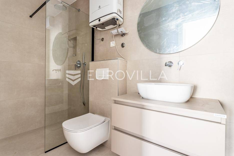 Okrug Gornji - južna strana otoka Čiova, moderna zgrada sa 17 stanova 150 metara od mora južne orijentacije s pogledom na more.Mikrolokacija nekretnine je odlična - nalazi se odmah uz dvosmjernu cestu par minuta od novog mosta i samo desetak minuta vožnje od splitskog aerodroma.Zgrada se proteže na pet etaža s dva vanjska ulaza i dva lifta koji povezuju katove od podruma gdje su smještene garaže i spremišta. Na svakoj etaži nalazi se po pet stanova i posljednji kat je rezerviran za dva prostrana penthousea s panoramskim pogledom.STAN S8 - nalazi se u prizemlju zgrade. Sastoji se od hodnika, otvorenog koncepta kuhinje, blagovaonice i dnevnog boravka (27,69 m2), dvije kupaonice, dvije spavaće sobe, praonice i spremišta - ukupne zatvorene površine 73, 48 m2. U vanjskom dijelu pripadaju mu dva balkona terase s južne i sjeverne strane ukupne površine 16,48 m2.U opremanju stanova korišteni su najkvalitetniji materijali - pločice i sanitarije visoke klase, zatvori na električno podizanje roleta, klima uređaj u svakoj prostoriji, podno grijanje u kupaonicama i dnevnom prostoru. Novi vlasnik, ovisno o periodu kupnje i faze izgradnje uvelike može utjecati na unutarnji izgled stana.U cijenu je uključeno jedno garažno parkirno mjesto kao i spremište u podrumu zgrade.Stane je useljiv i moguća je kupnja kreditom banke.Više informacija na upit.... Više na eurovilla.hr, ID: 501203