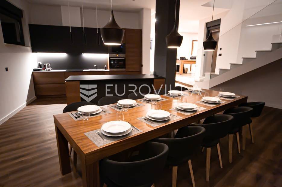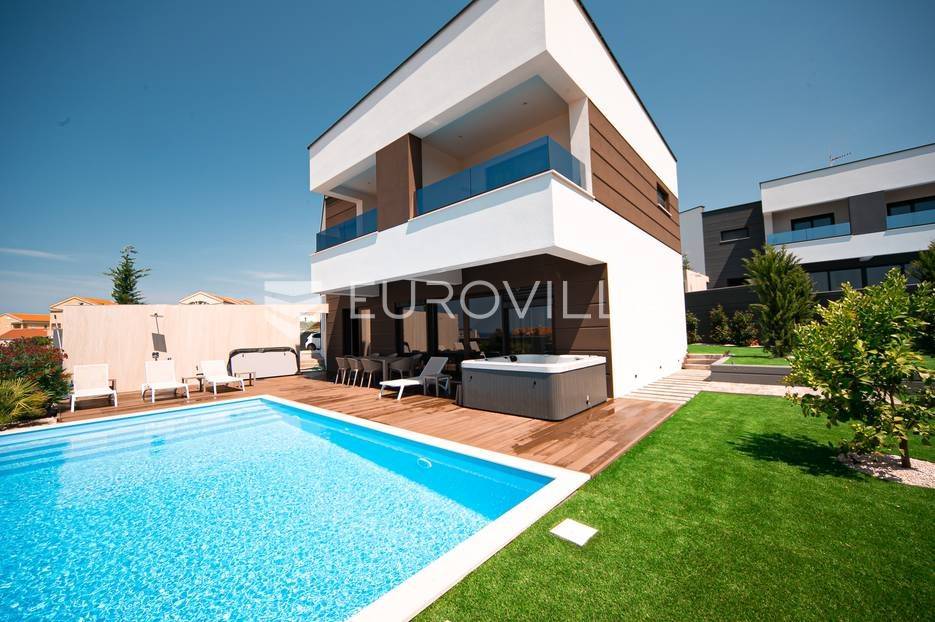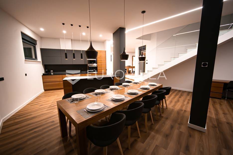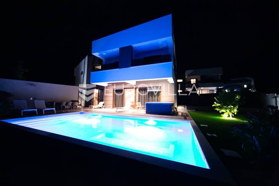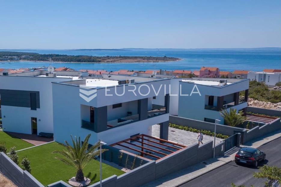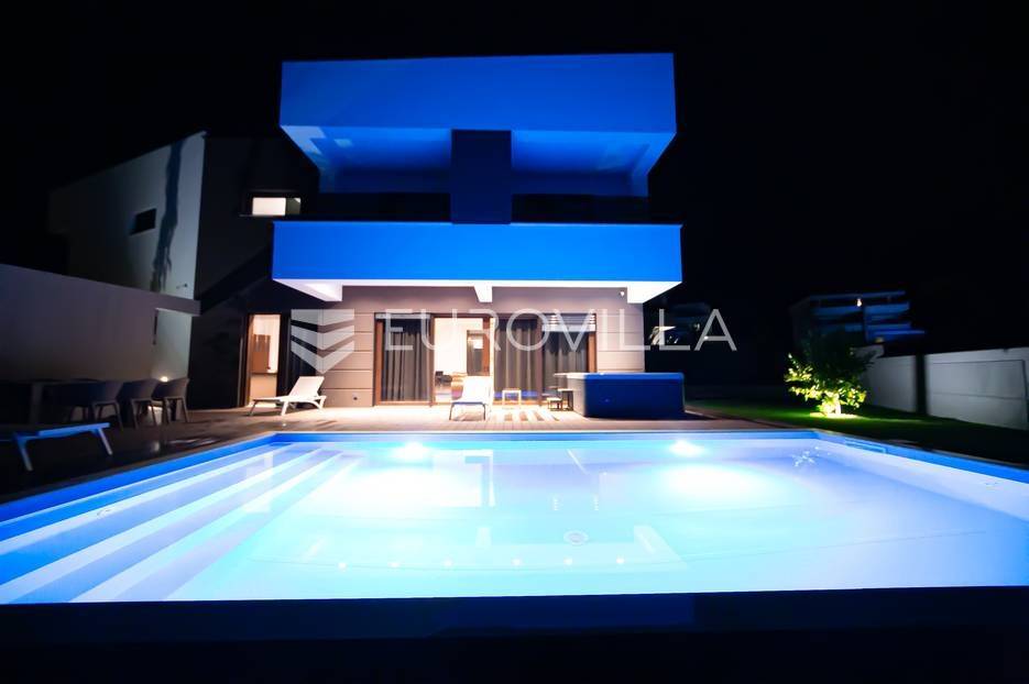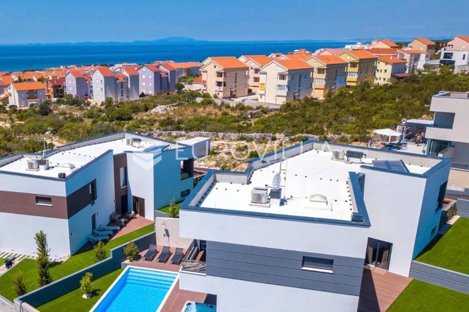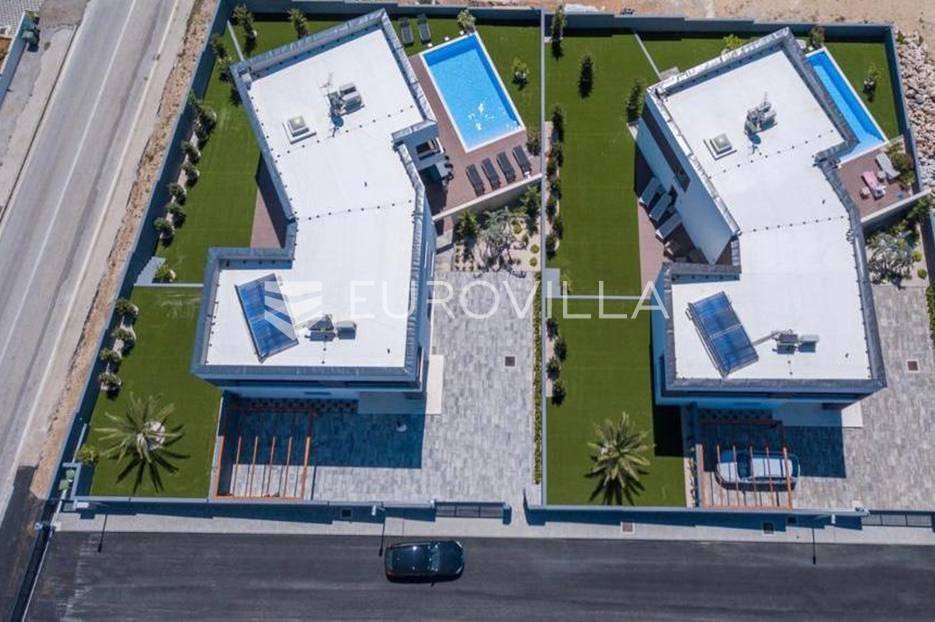 Novalja, dvije luksuzne vila kategorizirane s 5* površine 350 m2 s dvorištima od 650 m2 novije gradnje 2020. godine izgrađene na dvije etaže u sklopu resorta. Idealno kao investicija za nastavak uspješnog poslovanja.Prizemlje: kuhinja s blagovaonicom, dnevni boravak, kupaonica, igraonica te kotlovnica. Kat: 4 spavaće sobe s 4 kupaonice i 4 balkona. U dvorištu kuće nalazi se vanjski grijani bazen i jacuzzi, te roštilj i vanjski tuš. Svaka kuća ima pripremu za ugradnju unutarnju sauna, kamin u sklopu dnevnog boravka…TEHNOLOGIJA: kuće su pametne (upravljanje pomoću aplikacije), svaka soba ima SMART TV, SMART TV u dnevnom boravku i igraonici, u igraonici se nalazi PlayStation i biljarski stol, podno grijanje u kupaonicama i klimatizacijski sustav Daikin, video nadzor i alarm, kuća ima podizno klizne stijene, te rolete i žaluzine na elektro pogon, led rasvjeta, mikrovalna, wine bar…MATERIJALI: namještaj u kombinaciji s orah drvetom, pod parket, stubište u kombinaciji sa staklom, bračkim kamenom i drvetom te led rasvjetom, unutarnja stolarija: furnirana vrata sa skrivenim pantima, detalji u kući su obloženi bračkim kamenom, terase su u decking oblozi, vanjske staklene ograde, svaka kuća ograđena je ogradom (potpuna privatnost korisnika)…Sve ostale informacije na upit.... Više na eurovilla.hr, ID: 515953