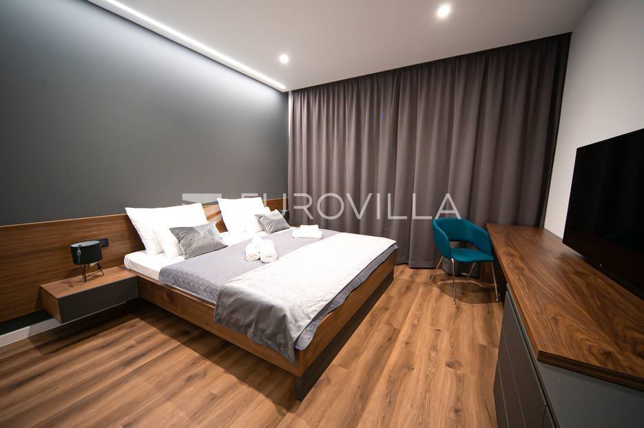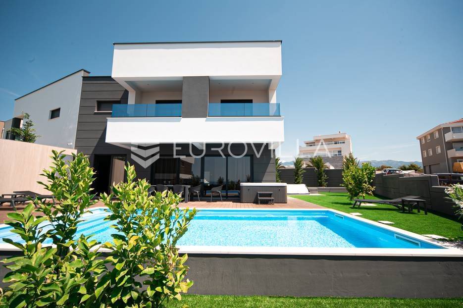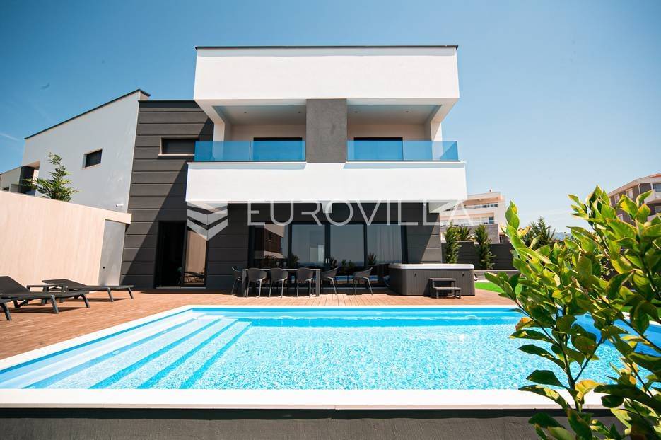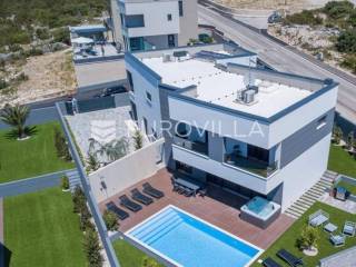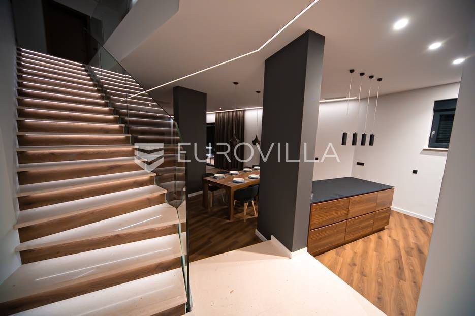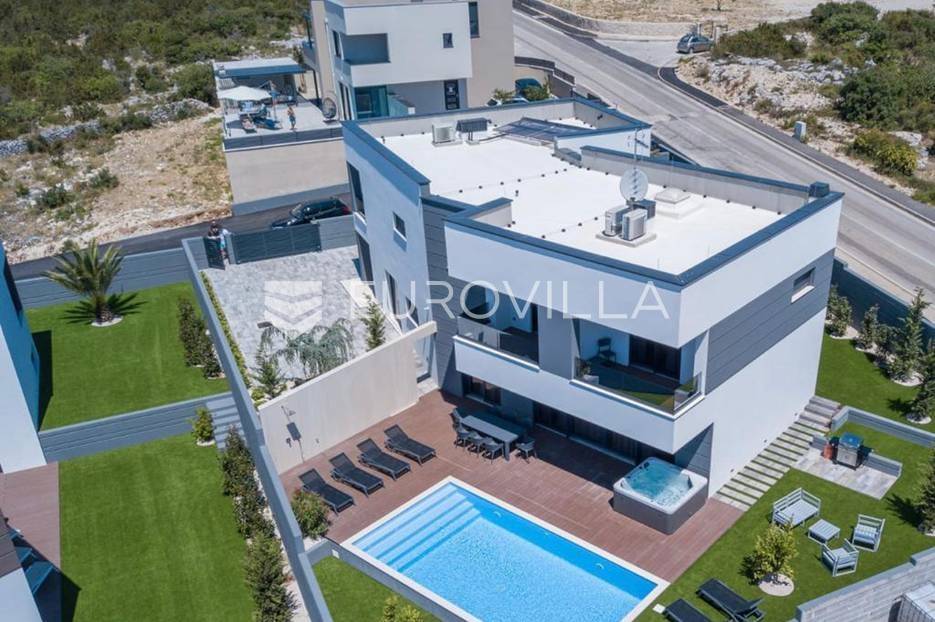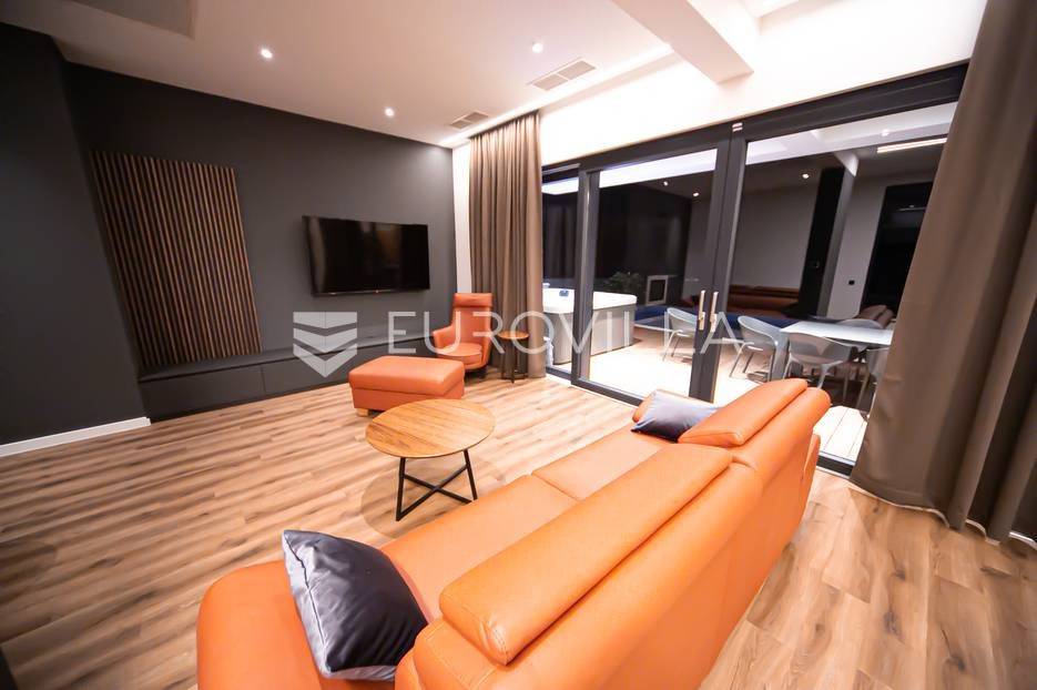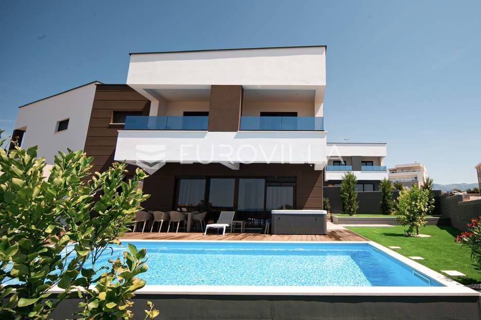 Novalja, dvije luksuzne vila kategorizirane s 5* površine 350 m2 s dvorištima od 650 m2 novije gradnje 2020. godine izgrađene na dvije etaže u sklopu resorta. Idealno kao investicija za nastavak uspješnog poslovanja.Prizemlje: kuhinja s blagovaonicom, dnevni boravak, kupaonica, igraonica te kotlovnica. Kat: 4 spavaće sobe s 4 kupaonice i 4 balkona. U dvorištu kuće nalazi se vanjski grijani bazen i jacuzzi, te roštilj i vanjski tuš. Svaka kuća ima pripremu za ugradnju unutarnju sauna, kamin u sklopu dnevnog boravka…TEHNOLOGIJA: kuće su pametne (upravljanje pomoću aplikacije), svaka soba ima SMART TV, SMART TV u dnevnom boravku i igraonici, u igraonici se nalazi PlayStation i biljarski stol, podno grijanje u kupaonicama i klimatizacijski sustav Daikin, video nadzor i alarm, kuća ima podizno klizne stijene, te rolete i žaluzine na elektro pogon, led rasvjeta, mikrovalna, wine bar…MATERIJALI: namještaj u kombinaciji s orah drvetom, pod parket, stubište u kombinaciji sa staklom, bračkim kamenom i drvetom te led rasvjetom, unutarnja stolarija: furnirana vrata sa skrivenim pantima, detalji u kući su obloženi bračkim kamenom, terase su u decking oblozi, vanjske staklene ograde, svaka kuća ograđena je ogradom (potpuna privatnost korisnika)…Sve ostale informacije na upit.... Više na eurovilla.hr, ID: 515953