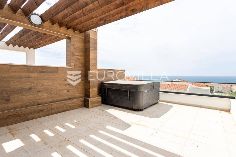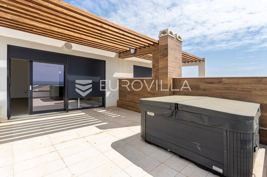 Pag, Novalja, dvosoban, dvoetažan stan u novogradnji, u zgradi sa ukupno četiri stana, površine 153m2.Stan se nalazi na prvom katu i potkrovlju stambene zgrade, a sastoji se od ulaznog prostora, otvorenog koncepta kuhinje, blagovaonice i dnevnog boravka, kupaonice i loggie na prvoj etaži, a na katu se. Nalze dvije spavaće sobe, kupaonica, gostinjski wc te terasa.Na terasi se nalazi jacuzzi te se pruža lijepi pogled.Stanu pripadaju dva parkirna mjesta.U blizini se nalaze svi sadržaji potrebni za svakodnevni život.Novalja se ističe po svojim prekrasnim uređenim plažama, a sam otok Pag ima bogatu povijest i kulturnu baštinu.Više informacija na upit.... Više na eurovilla.hr, ID: 544110